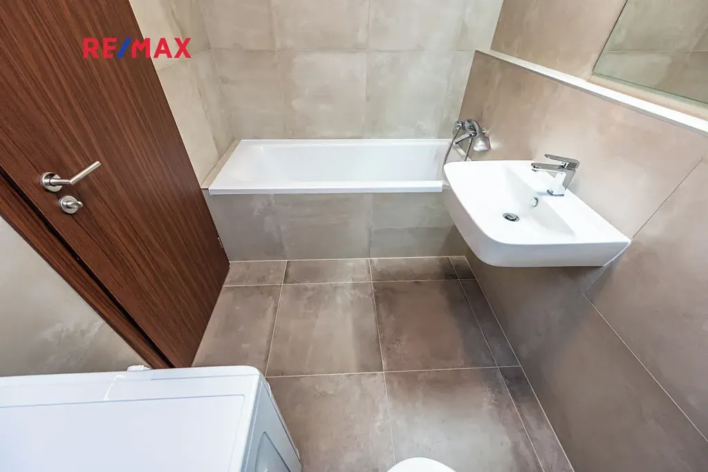 V zastoupení majitele nabízíme k dlouhodobému pronájmu světlý a prostorný byt 2kk 56m2 + 15,5m2 lodžie v novém developerském projektu Zahálka ve velmi žádané lokalitě v Praze 4 - Modřanech. Jednotka se sestává z vstupní chodby (6m2) s šatní skříní. Obývací pokoj s kuchyňským koutem měří 28 m2. Linka je vybavena kvalitními vestavnými spotřebiči (myčka, chladnička, digestoř, varná deska, trouba). Z ložnice (15m2) se stejně jako z obývacího pokoje se vchází na rozlehlou terasu (15,5 m2), na které je umístěna komora. V koupelně se nachází vana, umyvadlo, WC a pračka Whirlpool. Podlahy jsou plovoucí, bezpečnostní vstupní dveře, rekuperace. V oknech jsou nainstalovány vnitřní žaluzie. Byt se nabízí nezařízen (viz. fotodokumentace) a je k dispozici od poloviny května.