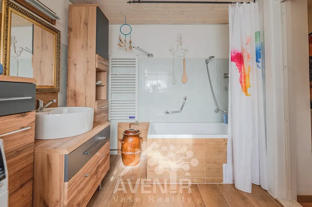 Velkým benefitem domu je prosklená zimní zahrada o ploše 5 m² navazující na obývací pokoj, která je umístěna v zadní části domu směrem do zahrady. Tento prostor je celý prosklený, má krásnou dřevěnou podlahu a vytváří velmi příjemné místo pro posezení, odpočinek nebo stolování s výhledem do zeleně. Díky ní dům získává další obytný prostor a příjemné propojení interiéru se zahradou.