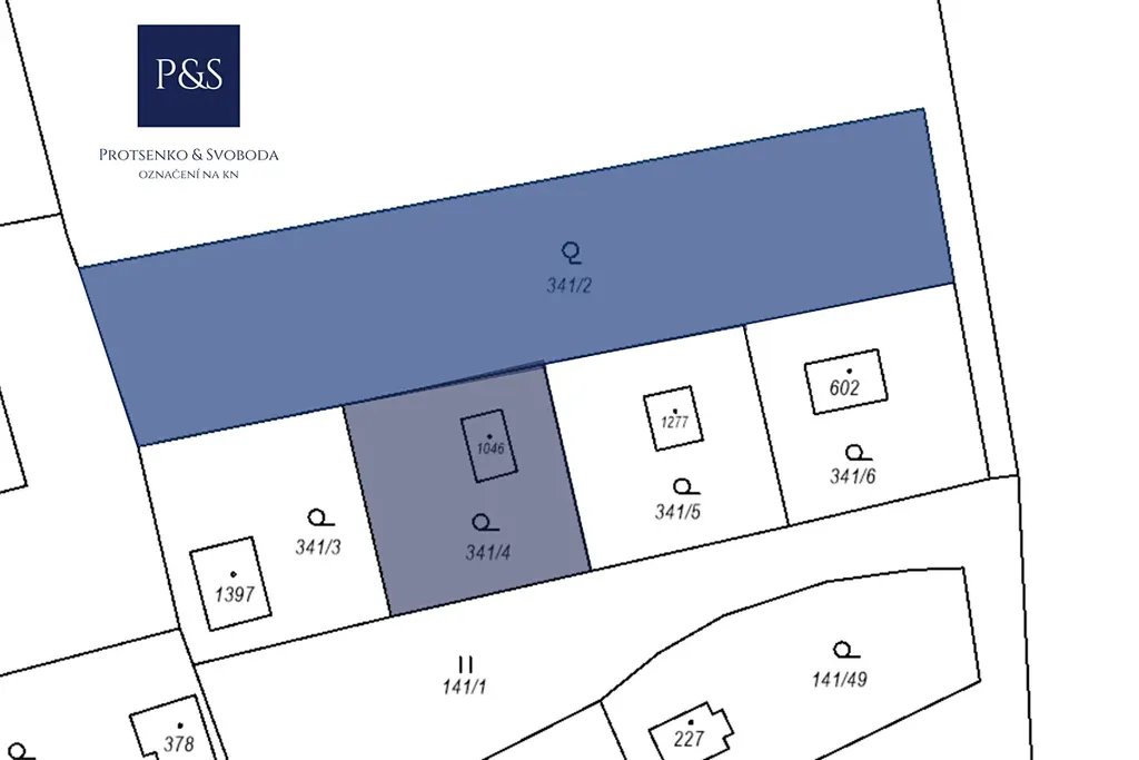 • Celková plocha: 2 003 m² (parcely 1046, 341/2, 341/4)