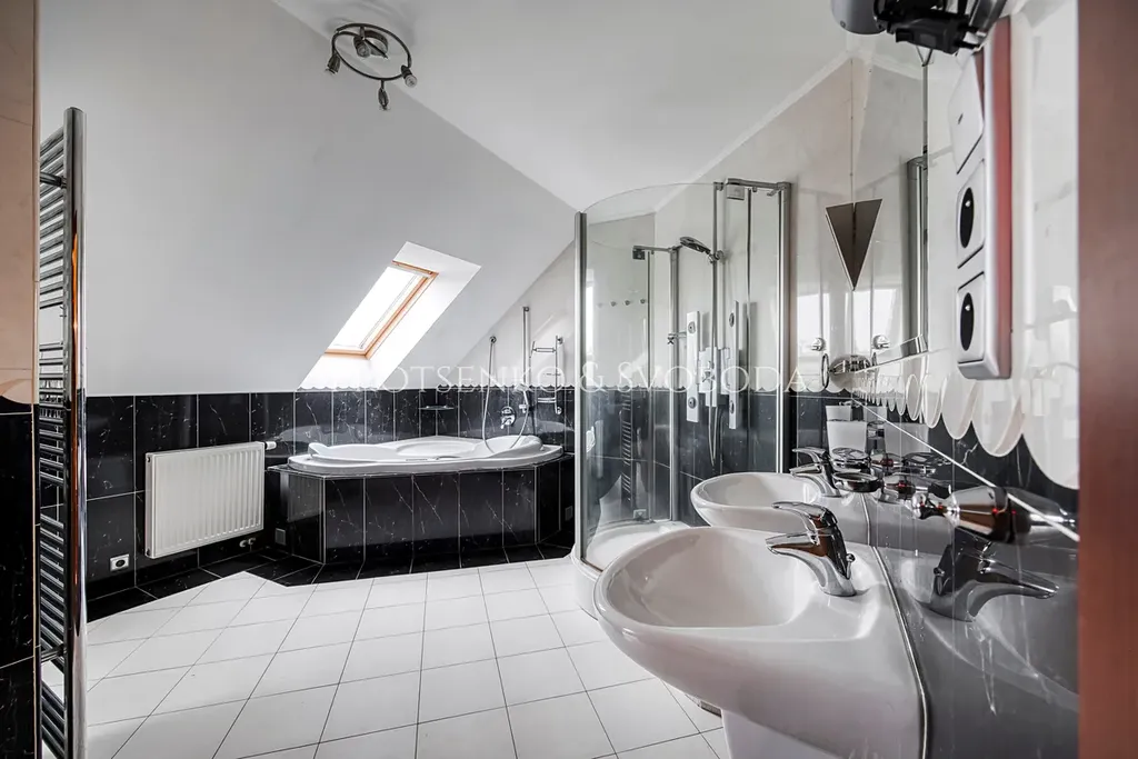 Čtyři ložnice (jedna s balkonem), prostorná koupelna s masážní vanou, sprchovým koutem HÜPPE, saunou, WC a bidetem. V patře je také prostor pro fitness nebo úložnou zónu. Dvě jižně orientované ložnice mají klimatizaci s přitápěním.