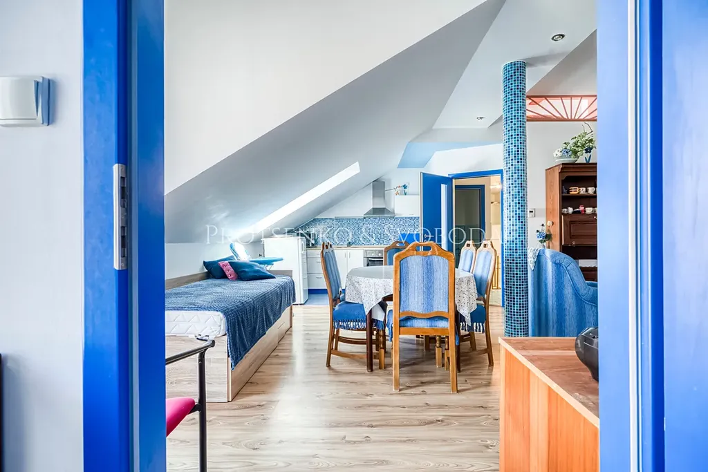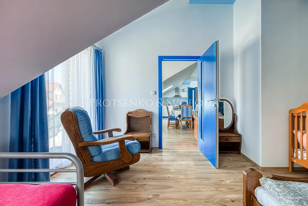 V patře se nachází dva plně vybavené apartmány určené k dlouhodobému nebo krátkodobému pronájmu, s výnosem ověřeným stávajícím provozem. Jeden z apartmánů má vlastní vstup na prostornou terasu o výměře 20 m² orientovanou na jih. Současní vlastníci mají k dispozici stabilní klientskou bázi a celý provoz běží s velmi nízkými náklady.