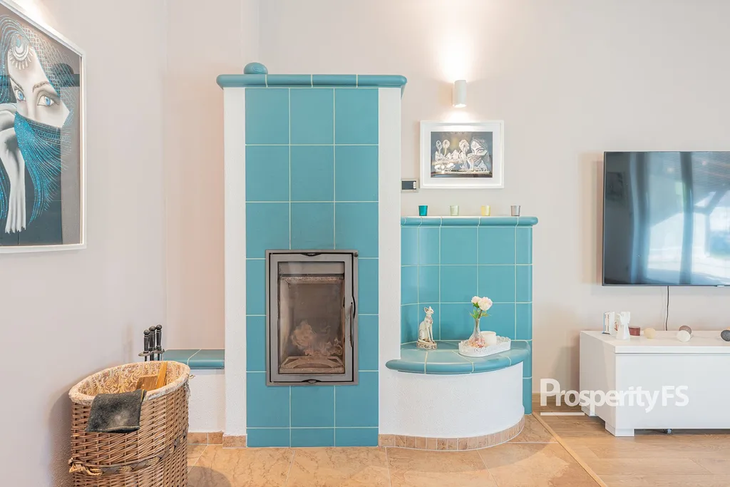 Srdcem domu je prostorný obývací pokoj s krbem, který v zimním období zajistí příjemnou a pohodovou atmosféru. Velkým benefitem je klimatizace, která je instalována jak v obývacím pokoji (dvě jednotky), tak následně v každém dalším pokoji. Kuchyně je plně vybavena moderní linkou se spotřebiči včetně myčky a lednice. Pro maximální relaxaci slouží koupelna s rohovou vanou i sprchovým koutem.
