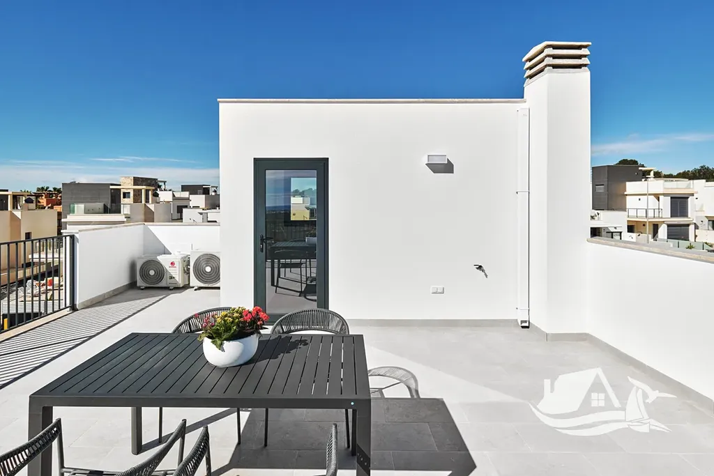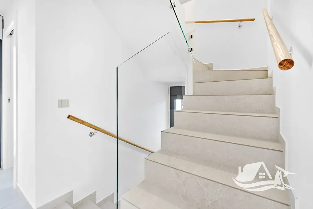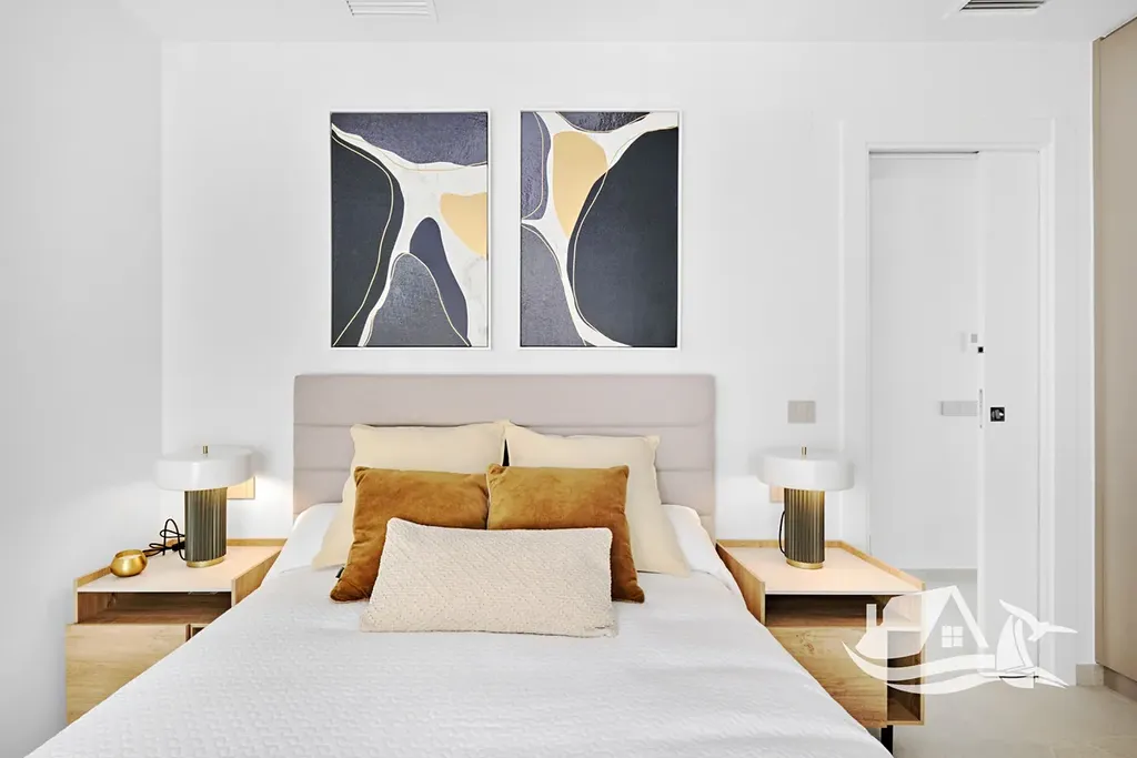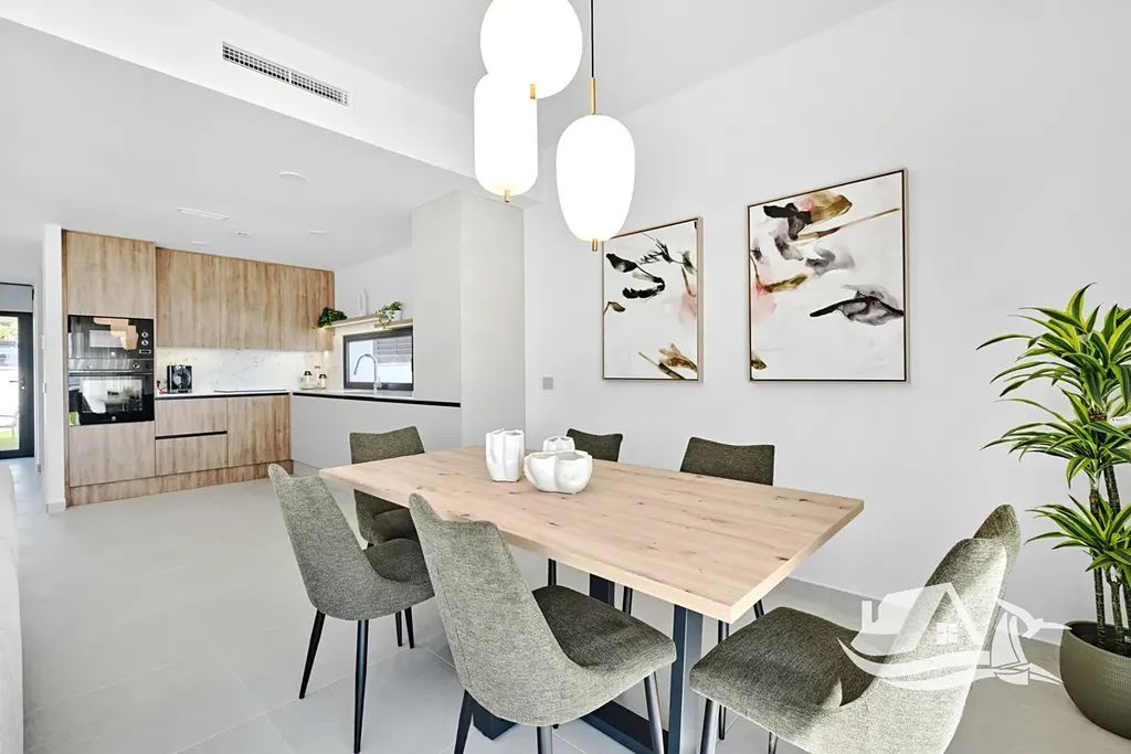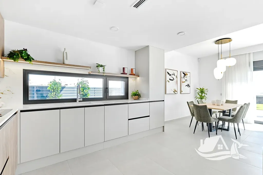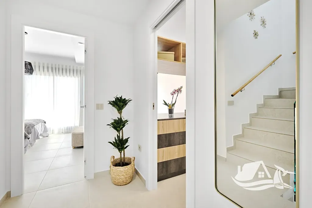 Interiéry jsou promyšlené tak, aby sloužily rodinám i párům, nabízejí tři ložnice a dvě koupelny, keramické podlahy pro snadnou údržbu a příjemný vzhled, plně vybavenou kuchyni a nábytek připravený k nastěhování, takže si nové bydlení můžete užít hned. Komfort zvyšují klimatizace a před instalace pro další chladicí jednotky, elektrické rolety a vestavěné skříně, vše v moderním a praktickém provedení.