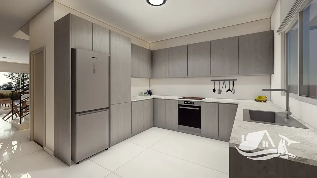 Apartmán je součástí komorního rezidenčního projektu navrženého v moderním středomořském stylu. Architektura klade důraz na čisté linie, dostatek přirozeného světla a plynulé propojení interiéru s venkovním prostorem. Dispozice bytu je velmi praktická a nabízí světlý obytný prostor, dvě komfortní ložnice a kvalitně řešené zázemí pro každodenní život.