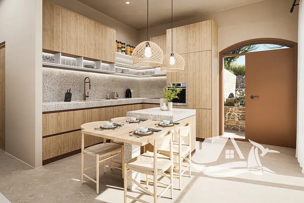 Nabízíme exkluzivní mezonetovou vilu 3+kk s obytnou plochou 93 m² a soukromým pozemkem o velikosti 111.81 m², nacházející se v projektu šesti vil v malebné obci Plaka u Chanie, situovaný ve svahu v amfiteatrálním uspořádání. Díky tomu má vila nerušený výhled na moře, Bílé hory i dechberoucí západy slunce.