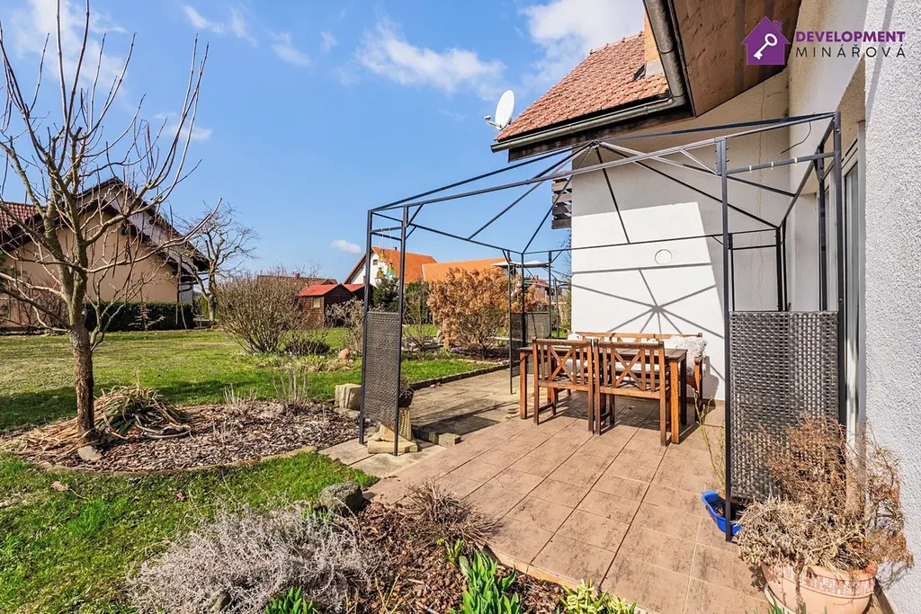 • Opečovávaná zahrada s místem pro vířivku, terasa, zastřešené parkovací stání, zahradní domek