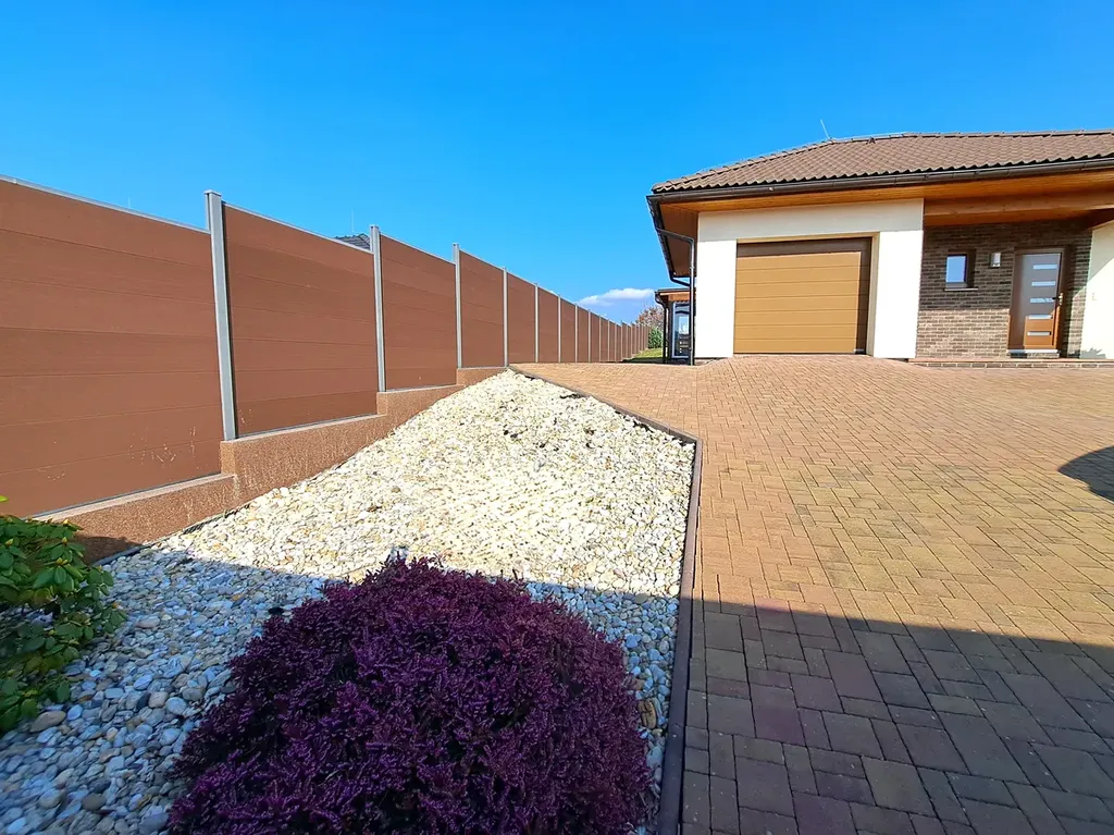 Celý pozemek je oplocen. Pozemek má výměru 926 m2 - z toho je zastavěná plocha a nádvoří o výměře 190 m2. Vjezd je zajištěn automatickou bránou. U domu jsou tři parkovací stání.