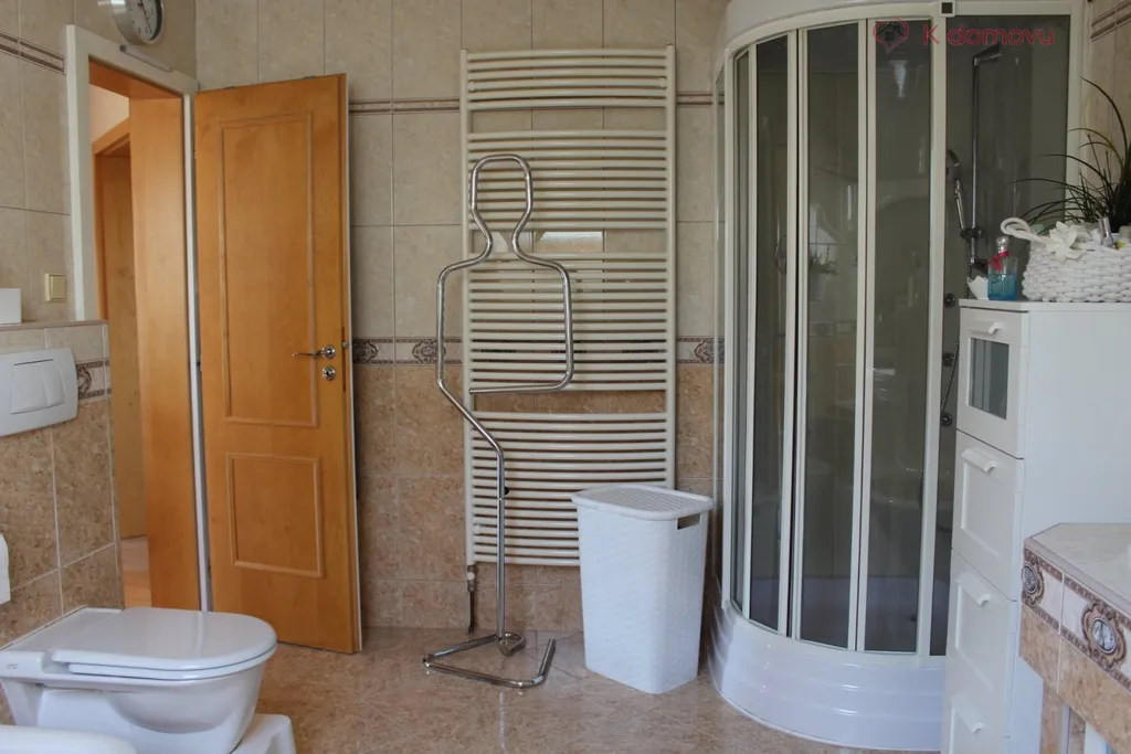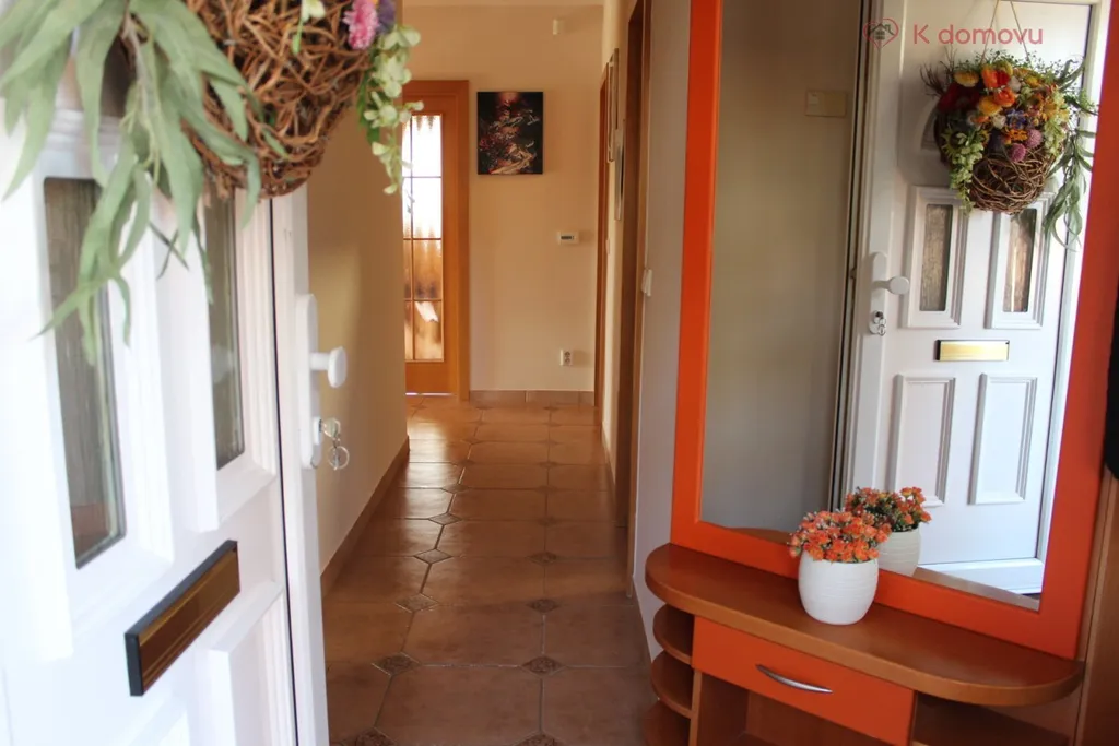 V přízemí se dále nachází vstupní chodba a praktická koupelna s místem pro pračku a sušičku.