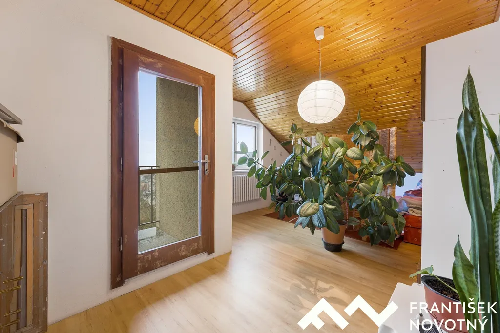 Dvě samostatné místnosti, lodžie s výhledem do zahrad a na Pálavu, velká půda vhodná pro další obytnou vestavbu, ateliér nebo domácí pracovnu.