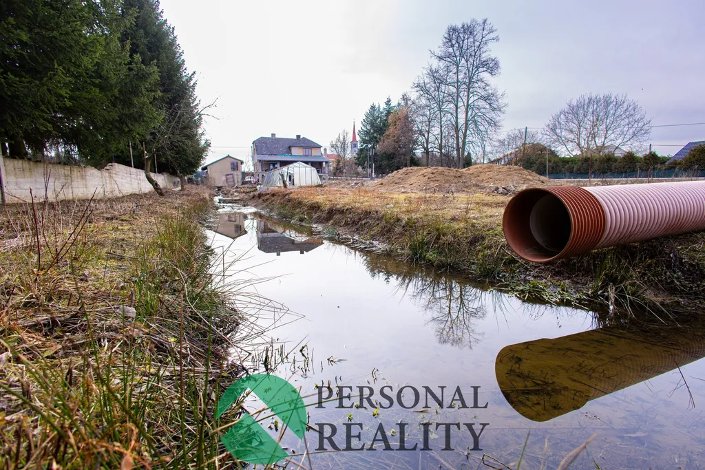 Podél východního okraje pozemku prochází vodoteč z cca 100m vzdáleného rybníku, která lze v případě potřeby využít v rámci architektonického řešení zahrady, případně zatrubnit do země.