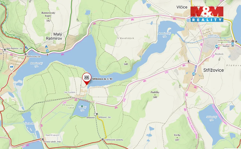 Prodej samostatně stojícího srubu na polosamotě ve Střížovicích na samém břehu Ratmírovského rybníka. Stavba o užitné ploše cca 65 m² nabízí 3 místnosti ve dvou nadzemních podlažích a stojí na pozemku 466 m². V přízemí se nachází obývací pokoj s kuchyňským koutem, koupelna s WC a vstupem na prostornou terasu. V patře jsou dvě ložnice. Nemovitost je v dobrém stavu, vhodná k rekreaci i k trvalému bydlení. Klidné, soukromé místo obklopené přírodou s dobrou dostupností do okolních obcí. Voda přivedena z vlastní studny, odpady svedeny do septiku. Na pozemku stojí kůlna na uskladnění nářadí a drobné zahradní techniky. Vytápění výkonnými krbovými kamny a klimatizační jednotkou. Pro více informací a prohlídku kontaktujte RK.