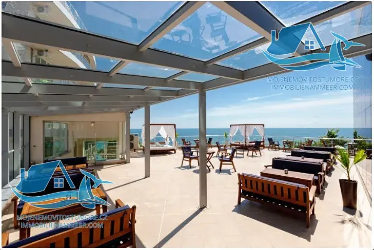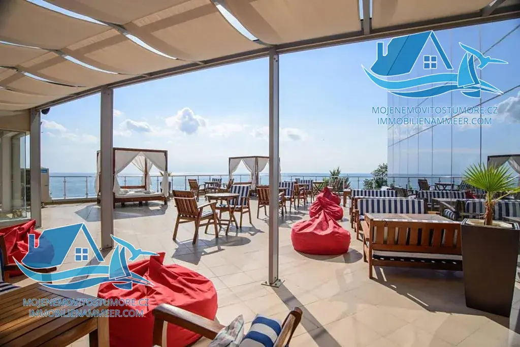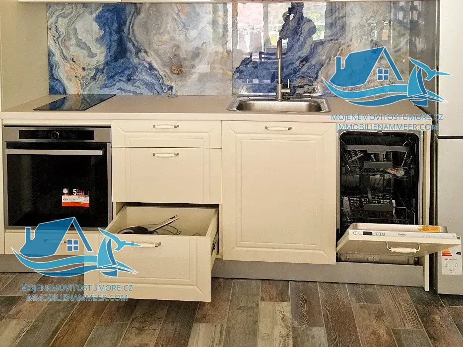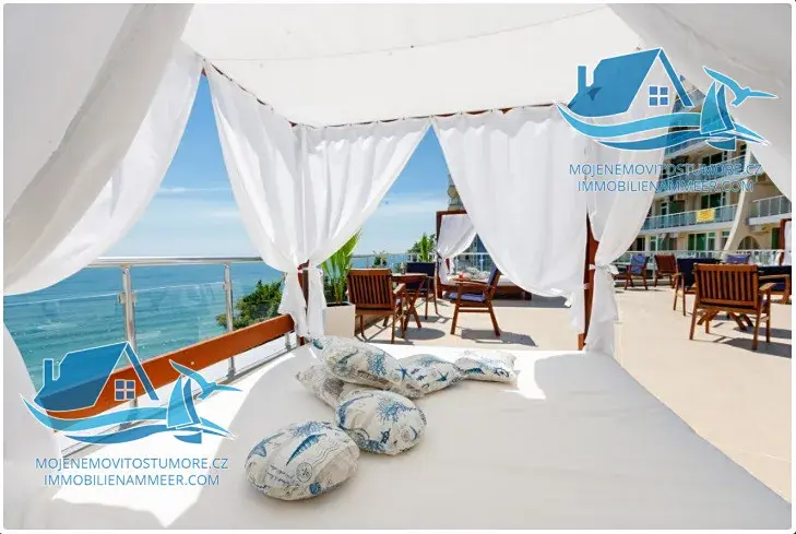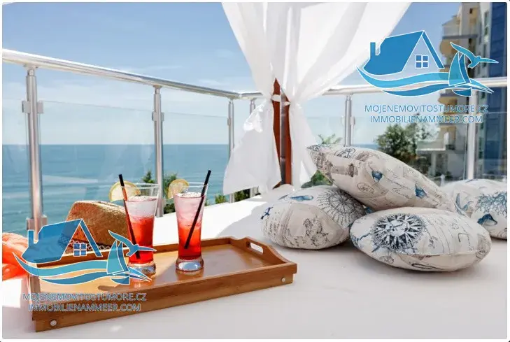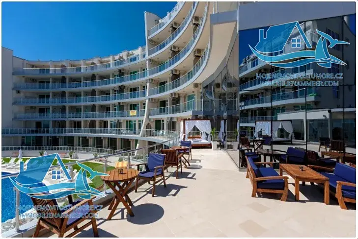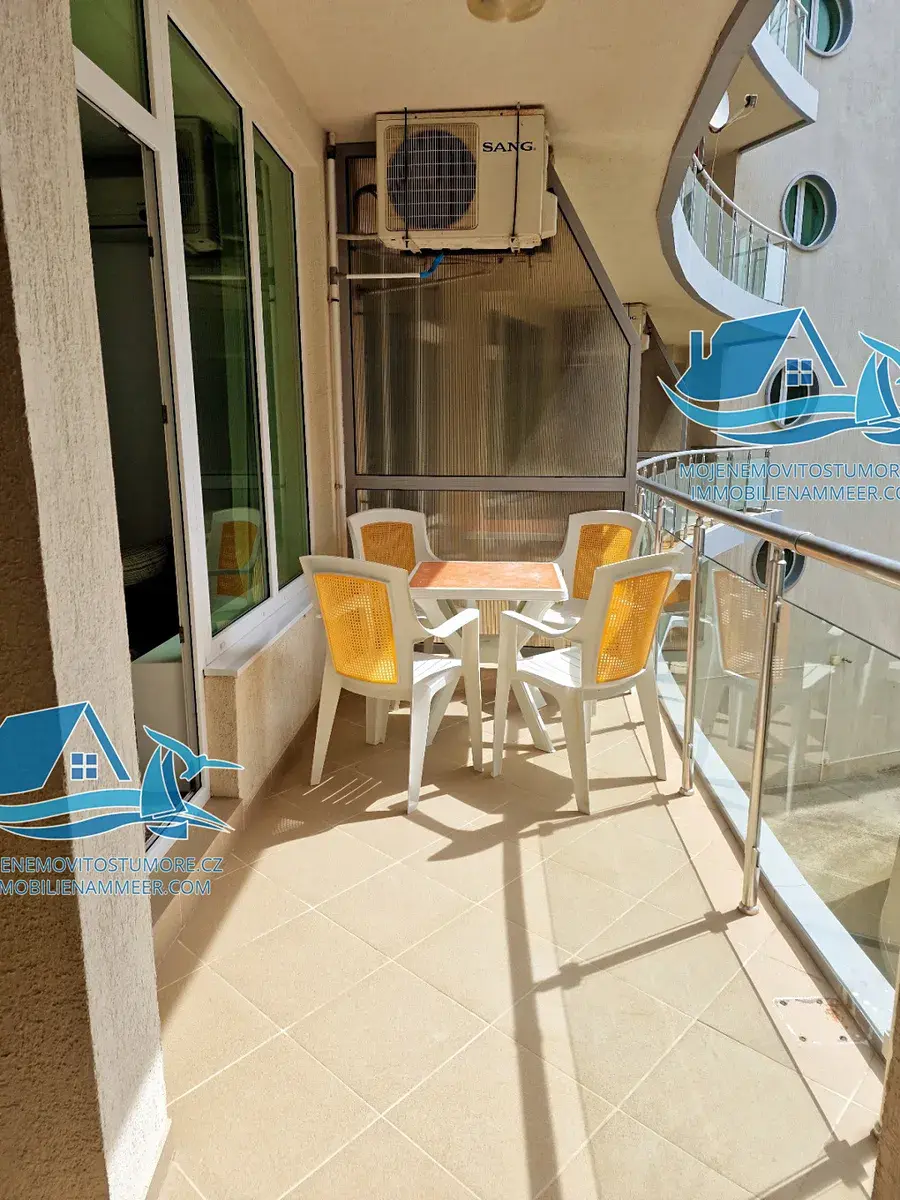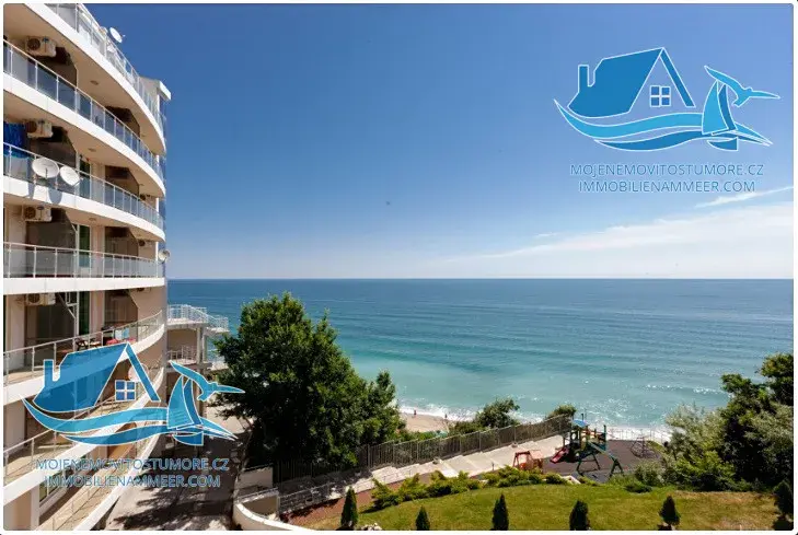 Nabízíme Vaší pozornosti 3+kk, nacházející se v první linii v luxusním rezidenčním komplexu Silver Beach, v klidném a malebném přímořském městečku Byala. Užitná plocha bytu je 107 m2 a celková plocha je 140 m2. Byt se nachází ve druhém patře a sestává z prostorného obývacího pokoje, prostorný obývací pokoj s kuchyňským s jídelním koutem, dvou ložnic, dvou koupelen s toaletou a parádní terasy s výhledem na moře. Okna a terasa mají výhled na klidnou část komplexu, což poskytuje vynikající příležitost vychutnat si v tichosti výhled na moře. Byt je plně zařízený a vybavený vším, co potřebujete, ihned k nastěhování. V kuchyni jsou stylové a zcela nové kuchyňské skříňky na míru z kvalitní MDF, zadní kuchyňská stěna je ze stylovým krásných velkoformátových žulových obkladů s vyobrazením motivu mořského živlu, nové (s 5tiletou zárukou) domácí spotřebiče (velká lednice s funkcí "No frost", myčka, pyrolytická samočisticí trouba, sklokeramická varná deska, plně vestavná digestoř, vestavná mikrovlnná trouba) a výsuvné zásuvky zabudované v kuchyňské ploše, které ano při vaření v kuchyni se nehromadí prach a mastnota. V jídelně je rozkládací dřevěný jídelní stůl, který pohodlně usadí až 8 osob. V ložnicích jsou 4 místa na spaní (1 manželská a 2 samostatné postele), v obývacím pokoji další místa na spaní na velké rozkládací pohovce (pohovka má úložný prostor na ložní prádlo, polštáře a přikrývky). Apartmán je vhodný jak pro velkou rodinu s dětmi, tak pro společnou dovolenou dvou rodin.
