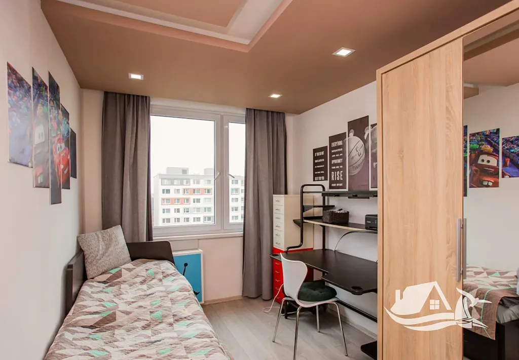Kuchyně a koupelna jsou provedeny v kvalitních materiálech s důrazem na odolnost a dlouhou životnost. V kuchyni, chodbě, koupelně i na samostatném WC je položena kvalitní podlahová dlažba, která je praktická na údržbu a zároveň esteticky ladí s celkovým stylem bytu. Koupelna disponuje vanou i samostatným sprchovým koutem, což přináší maximální flexibilitu pro rodinný provoz. Toaleta je oddělena od koupelny, což zvyšuje komfort při každodenním používání. Obytné místnosti doplňuje odolná vinylová podlaha v dekoru dřeva, která spojuje elegantní vzhled s praktickou údržbou. Dispozice nabízí dostatek prostoru pro rodinu, pár i jednotlivce, kteří chtějí mít pohodlné zázemí i pracovní kout.
