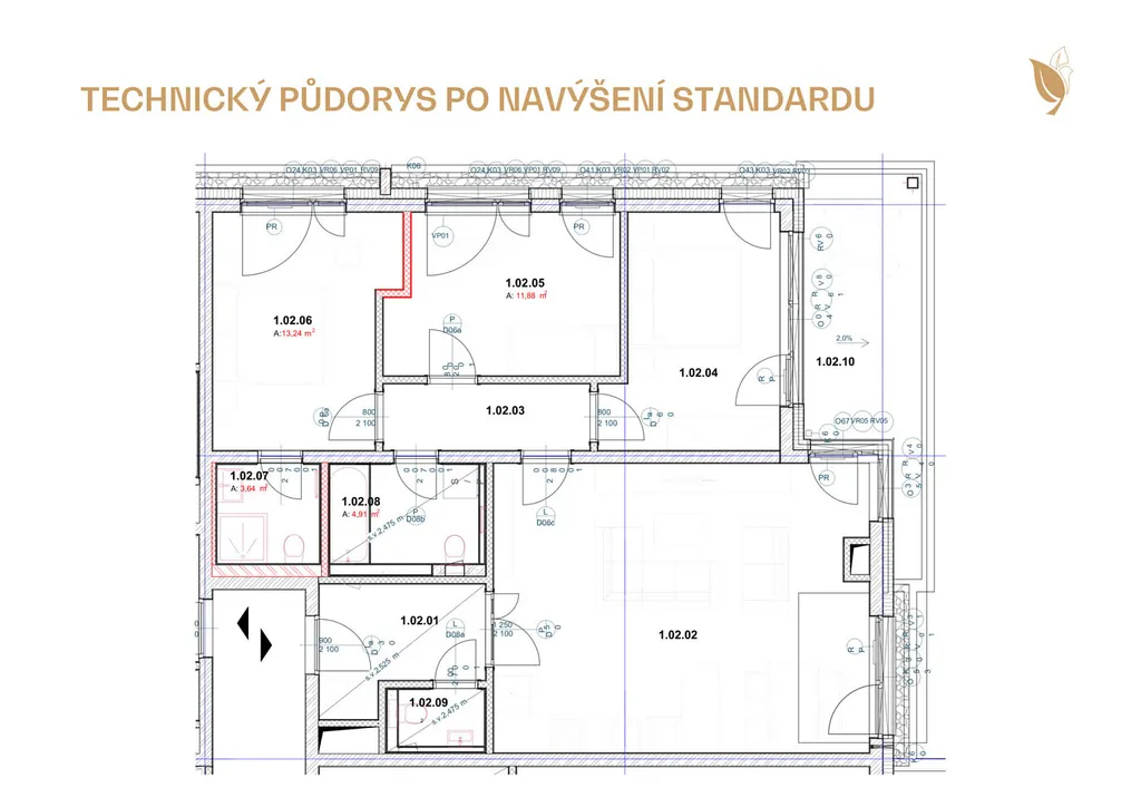 - garážové stání v podzemí (520.000 Kč vč. DPH) – parkovací stání není podmínkou koupě bytu