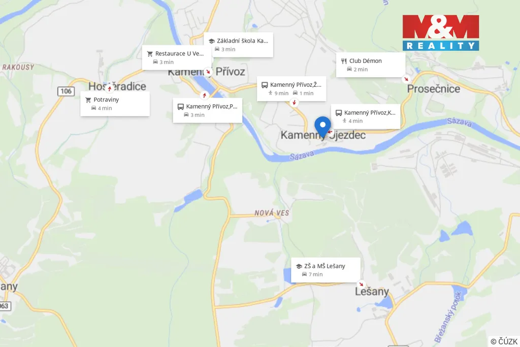 Nabízíme k prodeji dřevěnou chatu o užitné ploše 69 m² na vlastním pozemku o výměře 492 m² v klidné a vyhledávané lokalitě obce Kamenný Újezdec v okrese Praha-západ. Chata se nachází v příjemném prostředí nedaleko řeky Sázavy, mimo záplavovou oblast. Do chaty je zavedena elektřina (230/400 V), voda je přivedena z obecního vodovodu a odpad je sveden do jímky. Ohřev vody zajišťuje elektrický bojler, vytápění je možné kamny na dřevo nebo elektrickým přímotopem. Dispozičně je chata řešena ve třech podlažích. V 1.NP se nachází veranda, obývací místnost s litinovými kamny, menší ložnice, toaleta a kuchyňka s komorou se vstupem do sklepní spižírny (cca 4 m²). 2.NP nabízí prostornou ložnici s balkónem a koupelnu se sprchovým koutem a umyvadlem. Ve 3.NP jsou dva menší pokojíky s pochozí výškou. Na zahradě je k dispozici kůlna (cca 5 m²), venkovní krb a udírna, ideální pro víkendový odpočinek. Ke koupi nemovitosti je zajištěn kompletní realitní a právní servis. Financování lze hypotečním úvěrem.