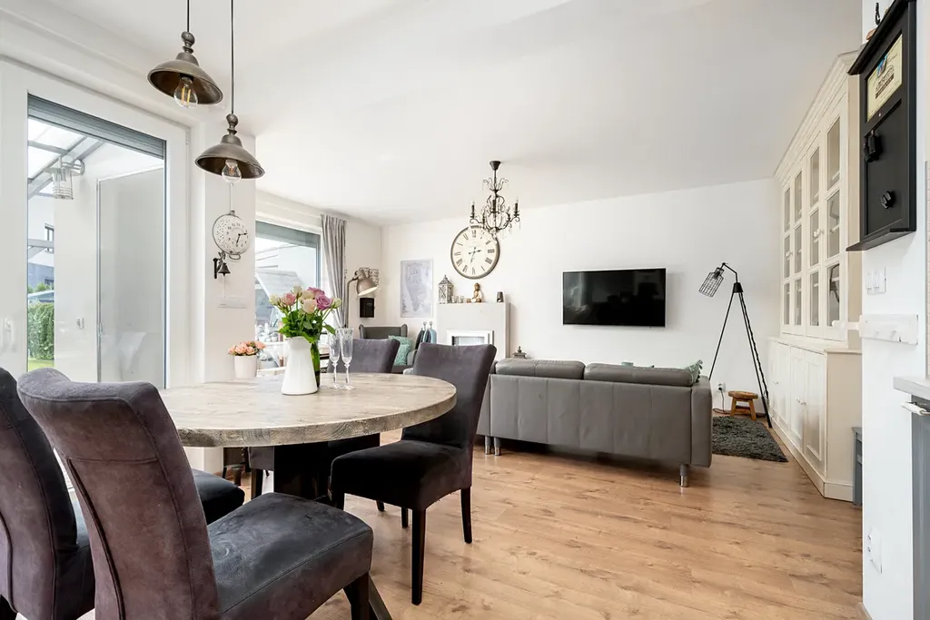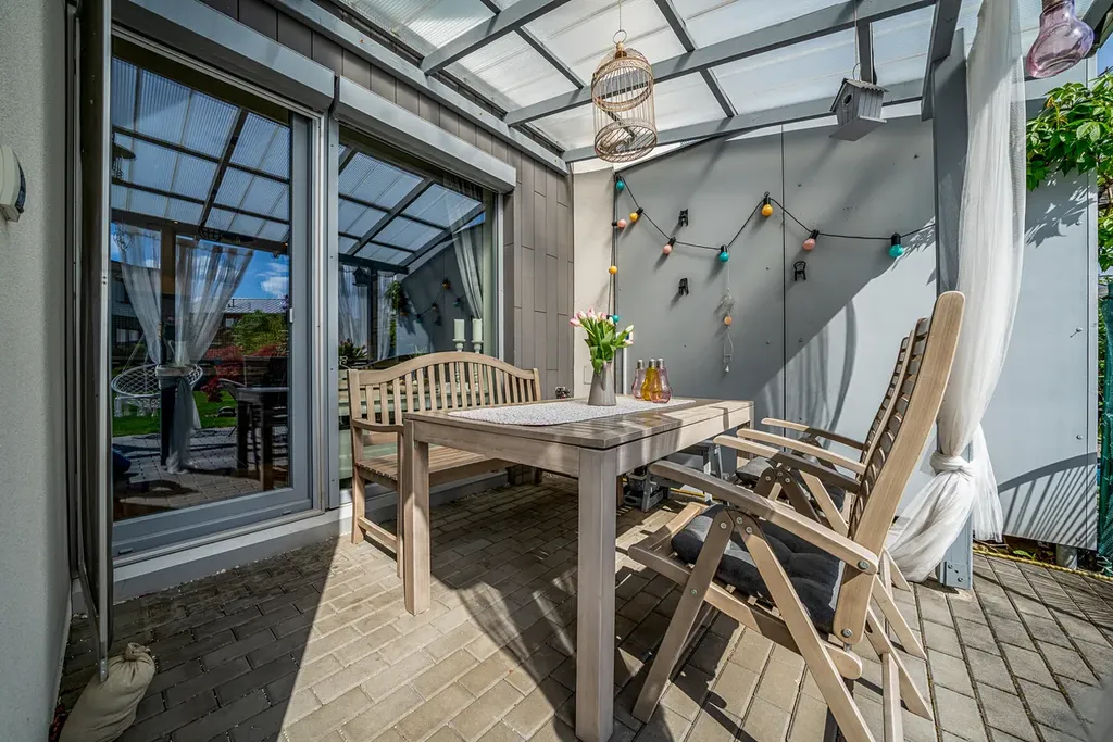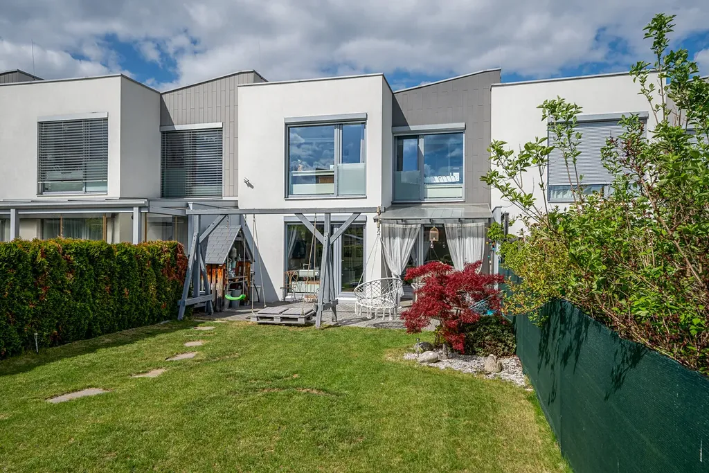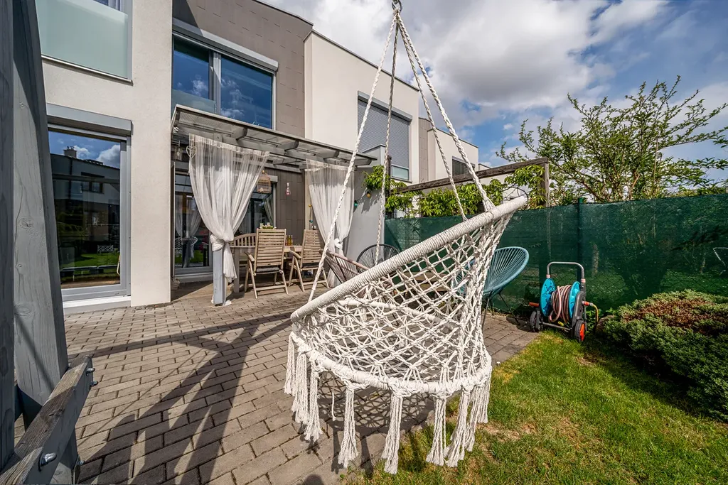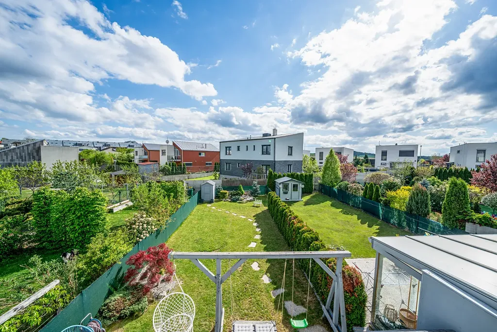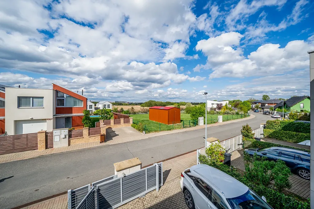 Nabízím k prodeji trendový řadový rodinný dům s dispozicí 5+kk a garáží,pozemek 290 m s užitnou plochou 138 m2,zahradou za domem o výměře 145 m2, a terasy 8,5m , dalším pozemkem před domem o velikosti 43 m2 v jihozápadní části Prahy 12, Cholupice. Dům je součástí rezidenční klidové zóny obce, vystavěné postupně v roce 2015. Dům samotný je patrovou, nepodsklepenou zděnou stavbou s rovnou a mírně šikmou střechou. Dispozice domu je rozdělena do dvou podlaží. Přízemí domu s hlavním vstupem do domu a integrovanou garáží, je řešeno jako 1+kk a je společenským patrem celého domu. Zádveří domu je prostorné natolik, že je zde prostor pro šatnu i technické zázemí domu. Obývací pokoj s elektrickým krbem je volně průchozí s kuchyňským koutem a tvoří tak jeden otevřený prostor. Příjemným bonusem je přímý vstup na zahradu domu a zastřešenou terasu s venkovním posezením. Zahrada za domem je klidným místem pro venkovní posezení s rodinnou a grilování s přáteli. Kuchyně je vybavena moderní kuchyňskou linkou v šedém dřěvěném provedení s vestavnými spotřebiči. Součástí podlaží je také koupelna vybavená sprchovým koutem, umyvadlem, zrcadlem a wc. V 1.NP propojeným s přízemím schodištěm se dřevěnými nášlapnicemi, se nachází 4 ložnice, dvě s orientací do zahrady, dvě do ulice. Dále pak prostorná koupelna s vanou, dvěma umyvadly, zrcadlem. V této koupelně je dostatek místa, tak je zde i pračka a sušička. Dále pak samostatné wc. Je to klidová část domu. Každý z pokojů má velké francouzské okno s nerušícím výhledem do zahrady nebo okolí domu. Rodičovská ložnice pak nabídne navíc šatnu oddělenou posuvnými dveřmi. Dům je napojen na všechny dostupné IS a primárním zdrojem tepla je plynový kotel s radiátory. K základním standardům domu patří kvalitní okna, plovouci vinylová podlaha a dlažba...v oknech bezpečnostní hliníkové žaluzie. Stejně tak optický kabel nebo zabezpečovací zařízení. Dum je prodáván včetně veškerého vybavení a luxusního dřevěného nábytku na míru, jako například knihovna v obývacím pokoji, 2x dětský pokoj s vybudovaným patrem na spaní, king size postel 220x200cm s vysokým čaloněným čelem, vybavený pokoj pro hosty atd Prochazkou je možné se vydat do lesů a parků v nejbližším okolí. Modřanská rokle, hriste a letiste Točná, cyklostezky. Stejně tak za aktivním odpočinkem, tenis, jízda na koni, fotbal, apod. Městská část Cholupice, je místem s výbornou dopravní dostupností. Zastávka busu linky č.341 je 1 min. v pochozí vzdálenosti od domu. Bus je za 8 minut na tram c.17,3,21 spojení s centrem Prahy za 15min. Autem je perfektní dostupnost i na Smíchov a Anděl cca 15 min, kousek je nájezd na Pražský okruh. Základní služby občanské vybaveností jsou v dosahu a otázkou pár minut autem nebo MHD v Modřanech. Obec Cholupice je v posledních letech velice vyhledávanou lokalitou pro bydlení, a to i díky své klidové podobě a možnostem aktivního života a přitom na dosah vymoženostem Prahy. Možné financovat hypotečním úvěrem.. Více na osobní schůzce a prohlídce.