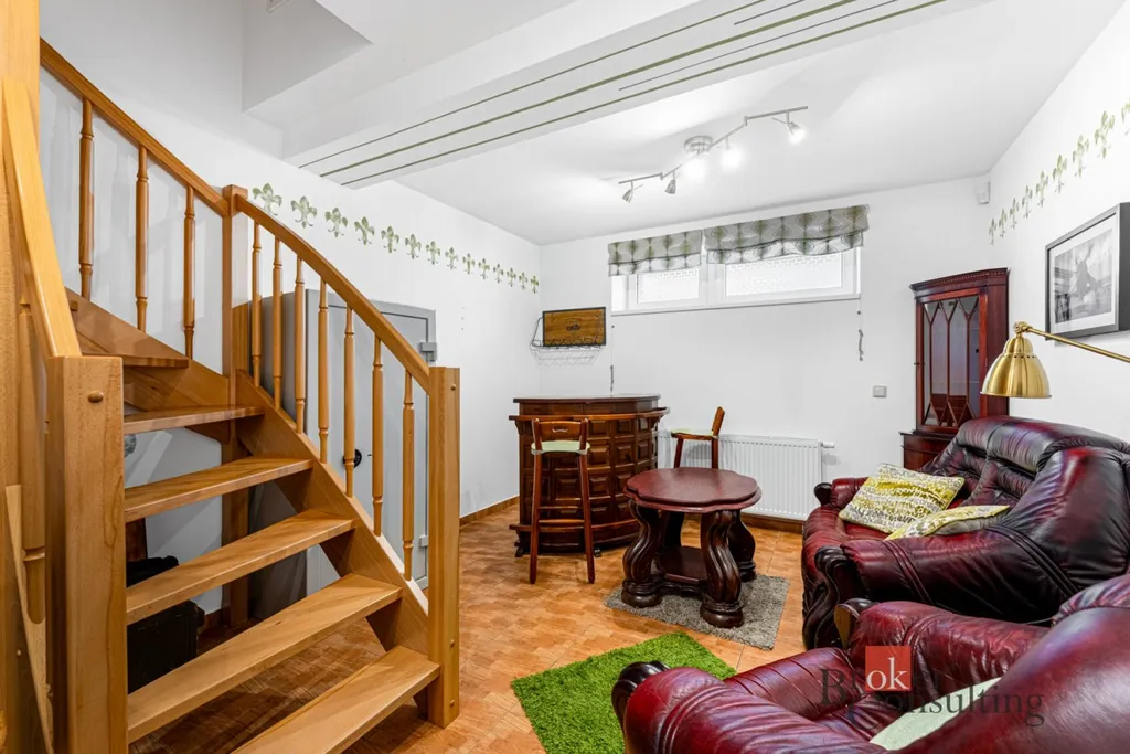 Velkou výhodou bytu je takédalší samostatná místnost v přízemí, do které vedouschody z předsíně. Tento pokoj může sloužit například jako ložnice, pracovna, pokoj pro hosty nebo pánská místnost.