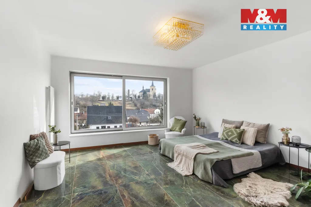 Nabízím k prodeji rodinný dům v obci Klobuky v okrese Kladno o dispozici 6+1 s užitnou plochou 180 m². Dům stojí na rovinatém pozemku o velikosti 750 m² v klidné části obce na jižním svahu s příjemným výhledem do okolí. Interiér nabízí promyšlenou dispozici, velkorysý prostor, styl, luxusní materiály a doplňky. Srdcem domu je impozantní obývací pokoj s krbem, který vytváří příjemnou atmosféru a zároveň přispívá k vytápění horního patra. Velká okna orientovaná na jih zajišťují dostatek denního světla a přímý vstup na terasu 16 m2 a zahradu. V patře se nachází několik pokojů vhodných jako ložnice, pracovna nebo dětské pokoje. V domě jsou 2 koupelny v nadstandardním provedení. Dům je částečně podsklepený, vytápěný plynovým kotlem. Zdrojem vody je vlastní kopaná studna s vodárnou, v garáži je přípojka na obecní vodovod. Odpad je řešen jímkou, kanalizace v obci je v plánu. Na pozemku je garáž a další parkovací stání. V obci je škola, školka, obchody, pošta. Výborná dostupnost do Prahy.