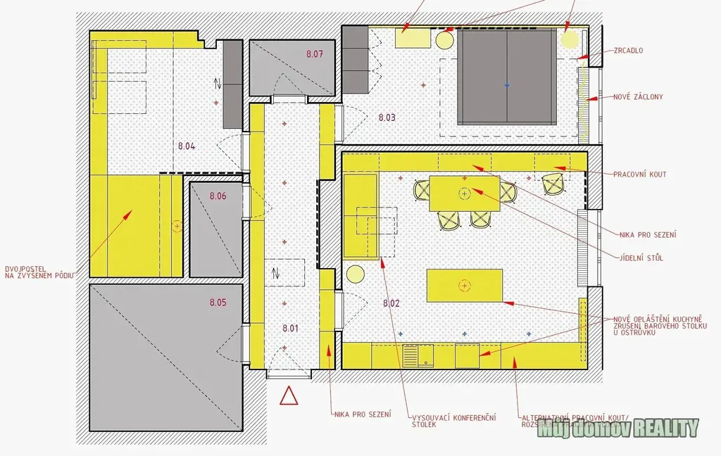 K bytu existuje také kompletní projekt případné úpravy interiéru, z něhož byly již realizovány vestavěné skříně na chodbě. Majitelé v bytě dlouhodobě bydleli a velmi si lokalitu oblíbili, stěhovali se pouze z důvodu potřeby většího prostoru.