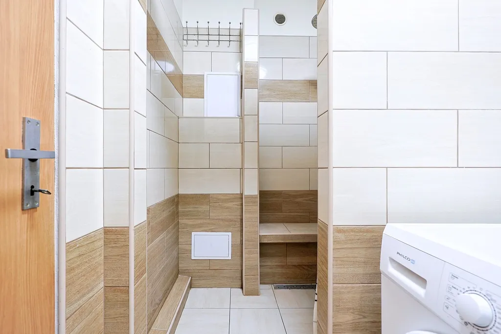 Samostatná jednotka s vlastním vstupem: pokoj 13,86 m², kuchyně 10,73 m², ložnice 9,24 m², sprcha a WC. Pronajatá zvlášť — vhodná pro nájemce, kteří preferují oddělený provoz.