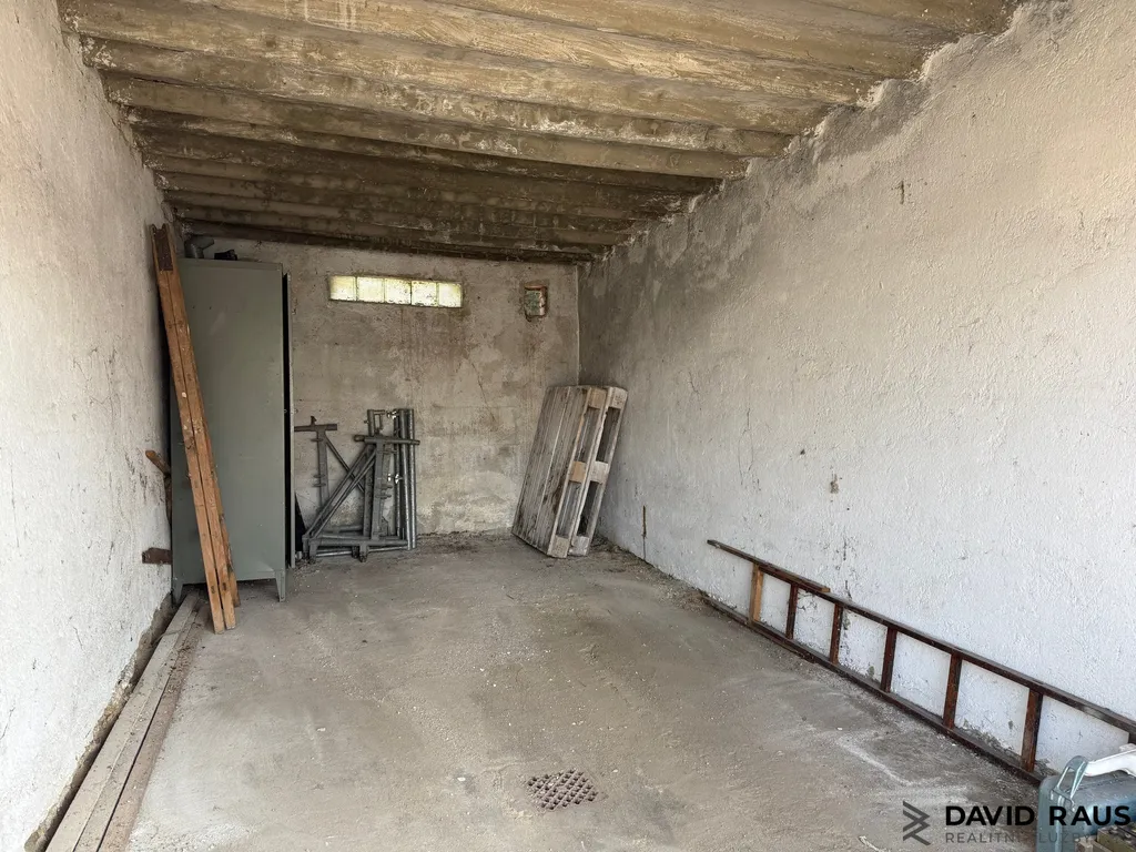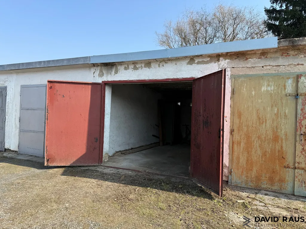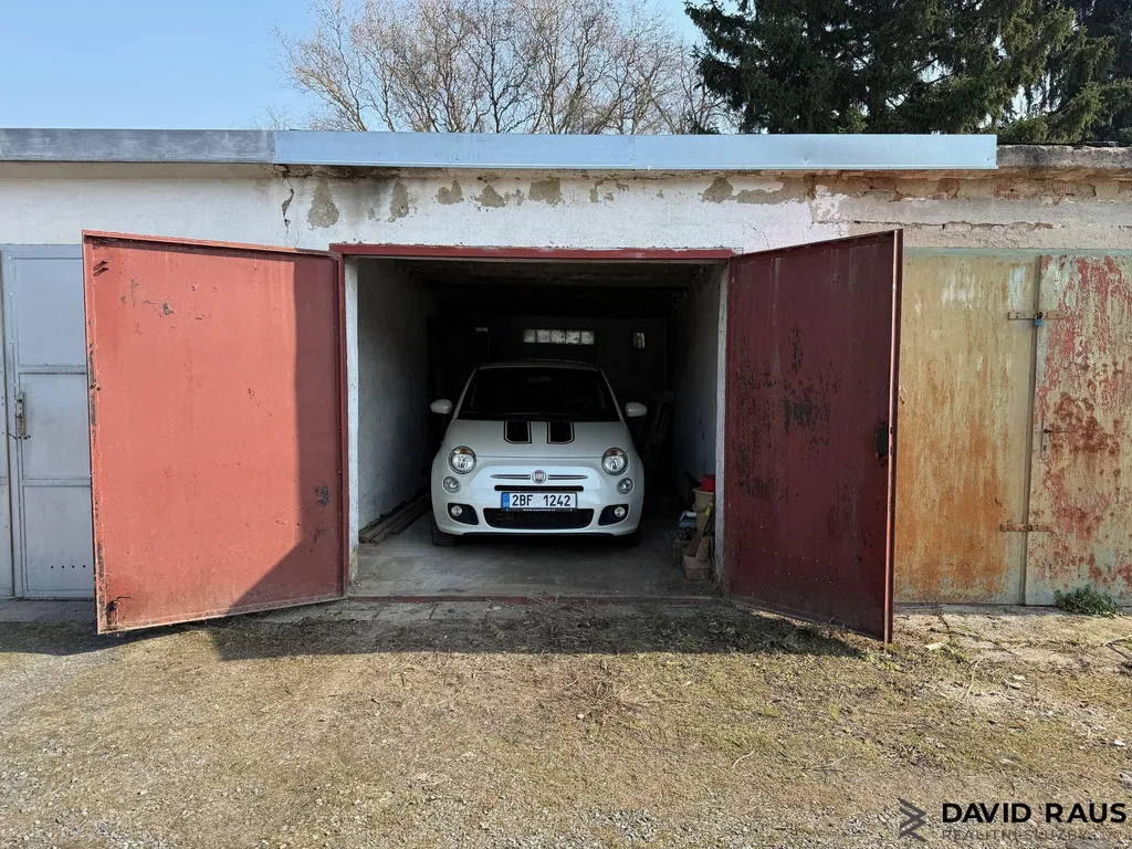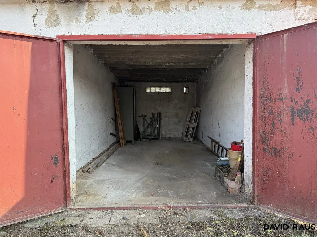 Garáž má nově opláštěnou střechu a je suchá. Je vhodná pro parkování osobního automobilu, motorky nebo jako skladovací prostor.
