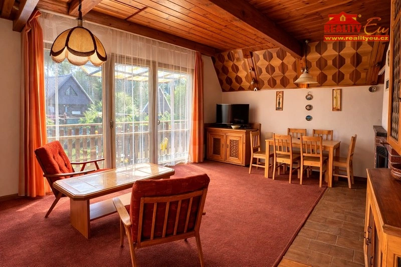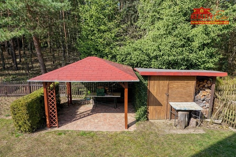 Nabízíme k prodeji rekreační chatu ze sedmdesátých let. Stojí na vlastním pozemku o výměře 504 m². Chata se nachází v klidném prostředí chatové osady vhodném pro rekreaci, odpočinek i víkendové pobyty v přírodě. (les přímo za chatou) Nemovitost je podsklepená. Ve sklepní části se nachází dílna, vodárna a další skladovací místnost, přístup do sklepa je řešen přímo ze zahrady. Do obytné části se vstupuje po schodišti do zvýšeného přízemí, kde je situován hlavní bytný prostor s posezením a krbem, který vytváří příjemnou atmosféru během chladnějších dní. Z obývacího prostoru je vstup na krytý balkon s celodenním sluncem. Součástí podlaží je také malá kuchyňka a koupelna s WC a sprchovým koutem. Po schodišti se dostanete do podkroví, kde se nachází ložnice a oddělený prostor s druhým dvoulůžkem, což poskytuje dostatek místa pro rodinné pobyty. Chata je udržovaná. Investice do sklepních prostor jsou žádoucí (vlhkost). Pozemek je rovinný a dobře přístupný, na zahradě se nachází vlastní studna, dále kolna na nářadí a pergola pro venkovní posezení. Elektřina 230/380 V, odpady do septiku, voda z vlastní studny – bylo osazeno nové čerpadlo. HUP na hranici pozemku.
