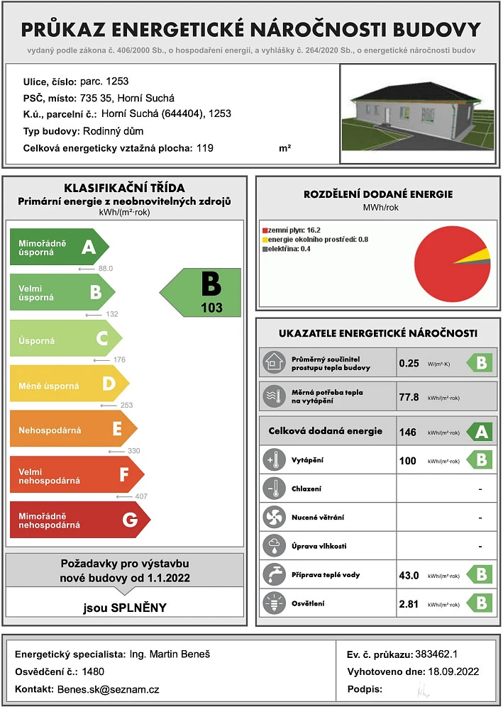 zastavěná plocha domu: 119,08 m²