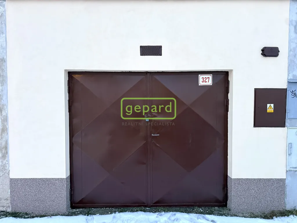 Vrata plechové dvoukřídlá. Do garáže je zavedena elektřina a vlastní elektroměr.