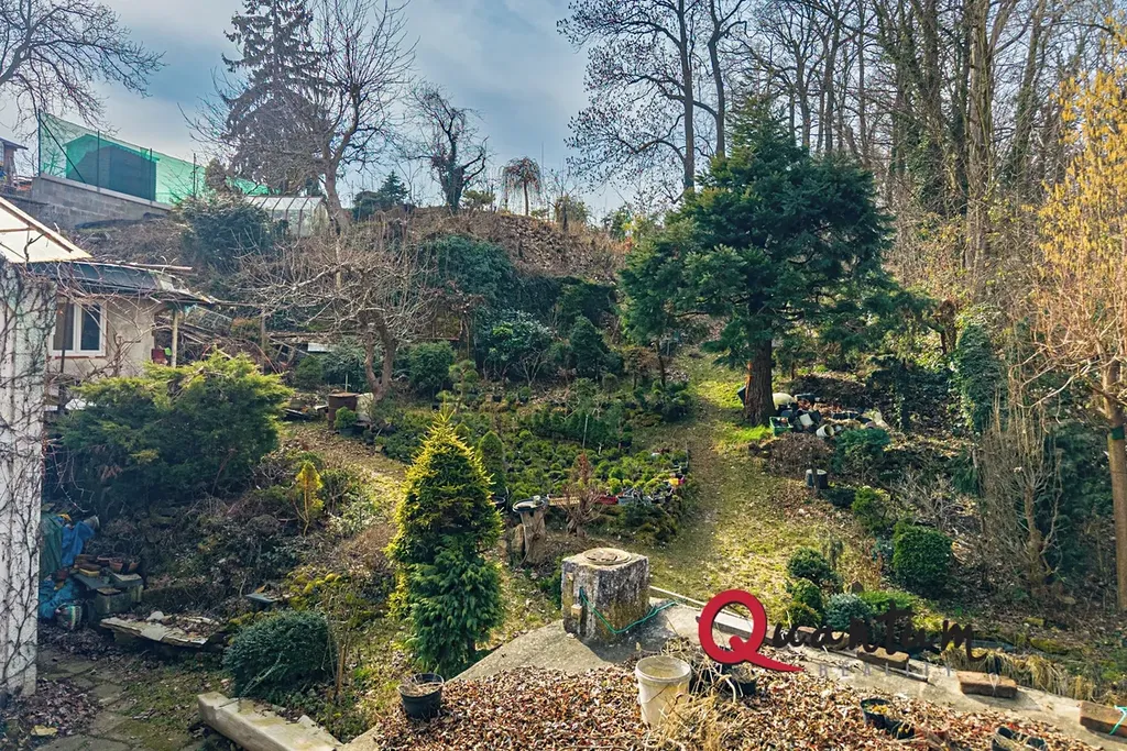 Zahrada osázená vzrostlými stromy a okrasnými dřevinami je ze dvou třetin svažitá, v horní třetině pak rovinatá a nabízí krásný výhled do okolní krajiny.