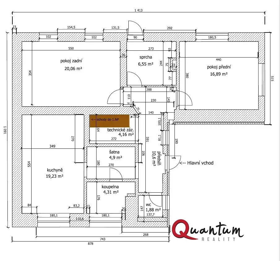 Dispozičně je dům řešen jako 5+1 se zastavěnou plochou 121 m² a užitnou plochou přibližně 178 m².