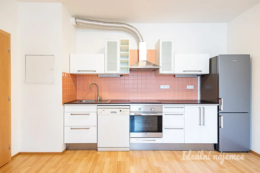 Byt je částečně vybavený a připravený k nastěhování. Kuchyň je zařízena spotřebiči – k dispozici je lednice, myčka nádobí, elektrická trouba, elektrická varná deska s digestoří. Zbytek prostoru lze vybavit dle vlastního vkusu.