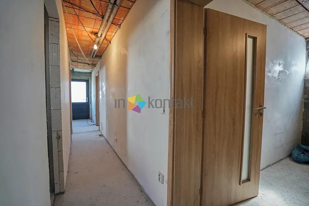 Aktuální stav a dokončení: Dům se prodává ve stavu rozestavěné stavby tak, jak je detailně zachyceno na fotografiích a v přiložených půdorysech. Budoucí majitel si tak sám podle svého vkusu a rozpočtu zajistí finální povrchy (výmalbu, podlahové krytiny), sanitu, interiérové dveře, kuchyňskou linku, venkovní úpravy soklu a finální zdroj vytápění.