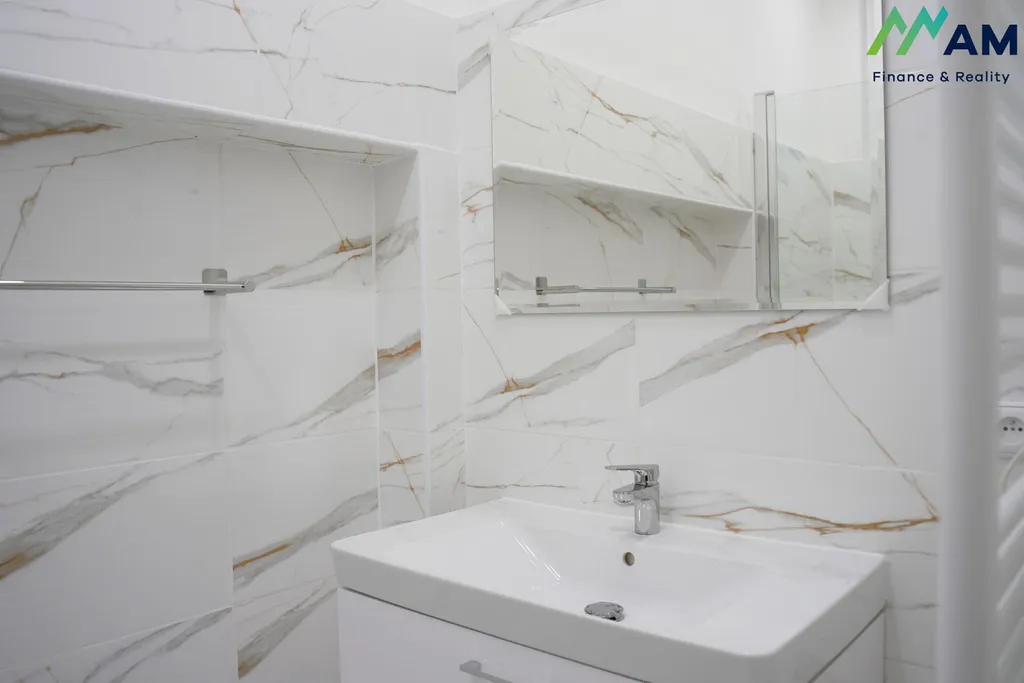 V celém bytě byly položeny plovoucí podlahy, stěny získaly hladký povrch díky sádrokartonovým úpravám a veškeré elektrické rozvody jsou nově v mědi, což zaručuje bezpečný a spolehlivý provoz. Srdcem domova je prosvětlený obývací pokoj elegantně propojený s jídelnou a moderní kuchyní. Zde najdete zcela novou kuchyňskou linku v nadčasové kombinaci bílé barvy a světlého dřeva, která je plně vybavena vestavěnými spotřebiči značky Gorenje, včetně myčky nádobí, indukční varné desky a horkovzdušné trouby, jež uspokojí i náročné kuchaře.