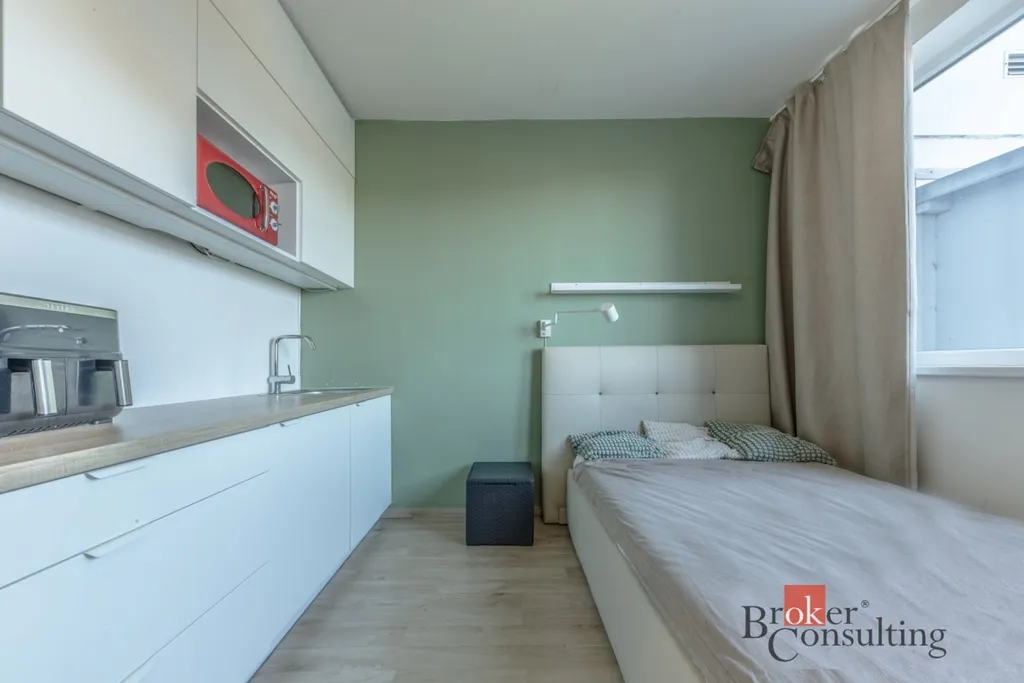 Nabízíme Vám exklusivně prodej garsoniéry o velikosti 17 m2, nacházejíce si v projektu V Bloku, Praha 5 - Jinonice, ulice Peroutkova. Praktické řešené je následující – vstupní chodba, koupelna se sprchovým koutem s toaletou, světlá místnost s kuchyňským koutem, kde je umístěna postel, pracovní stůl.
