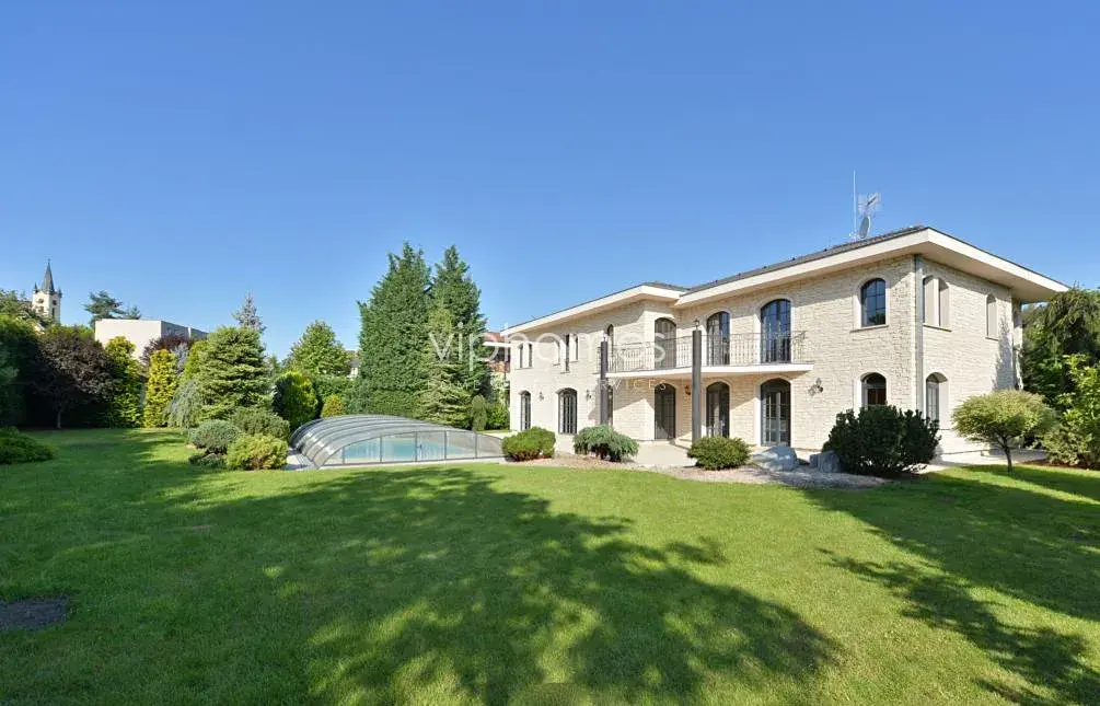 Velkoryse navržena moderní vila s krytým, vyhřívaným venkovním bazénem, saunou a rozsáhlou zahradou v sousedství přírodního parku Tichá Šárka a mezinárodní školy ISP v Nebušicích.