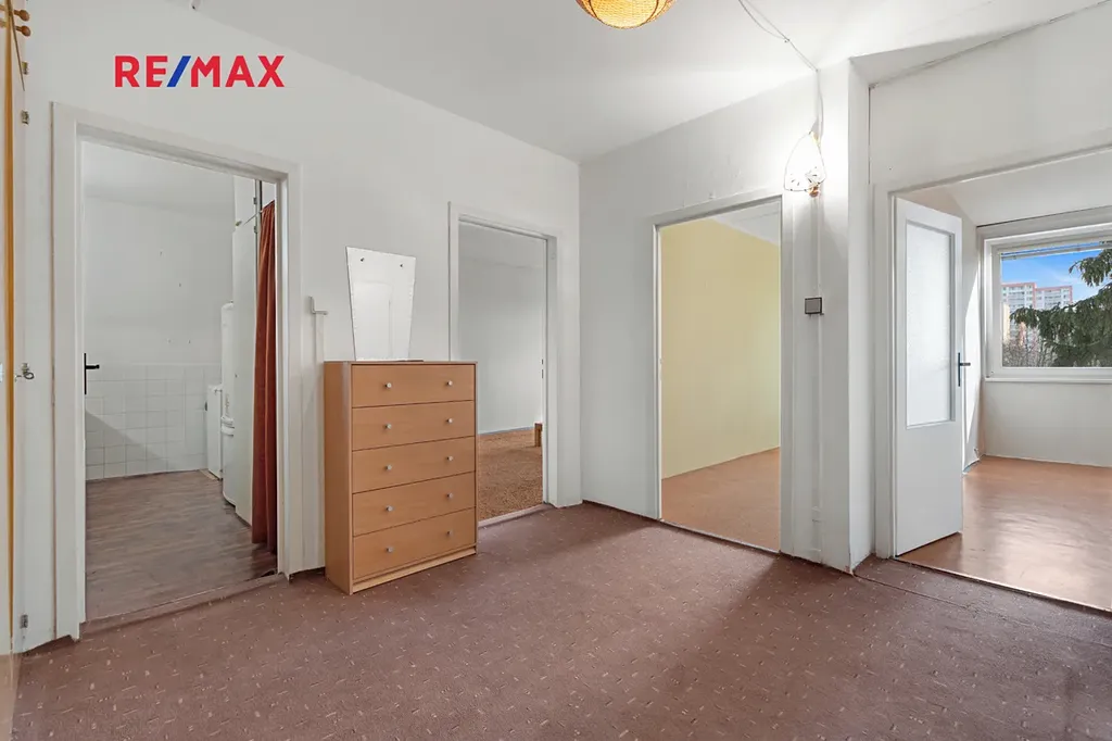 Nabízíme k prodeji byt o dispozici 3+1 v osobním vlastnictví, umístěný ve 3. NP udržovaného panelového domu s výtahem v ulici Mikulova, Praha 4 – Chodov.