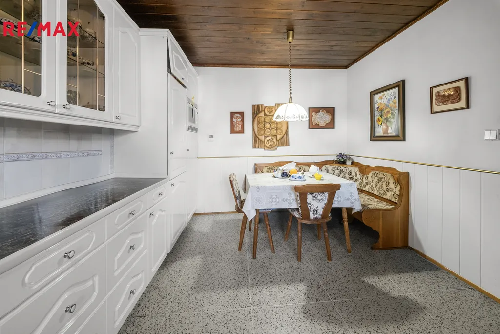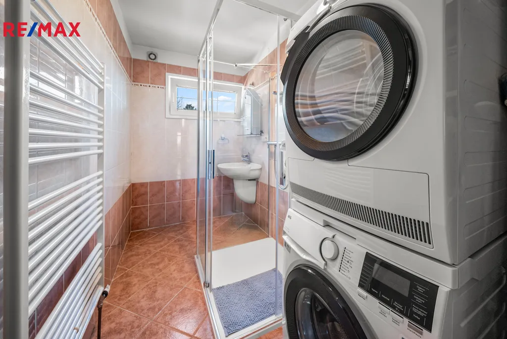 Dům je celý podsklepený – najdete zde prádelnu, velký sklep na zavařeniny a zásoby, dílnu, technickou místnost a garáž pro dvě auta stojící za sebou.