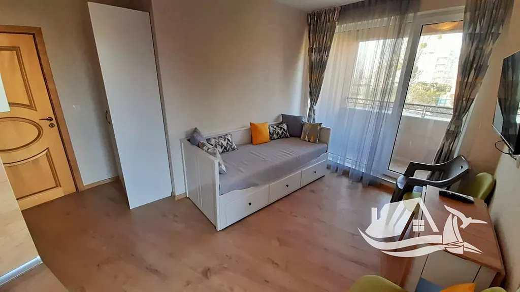 Pláž je vzdálena přibližně 800 metrů, což vám zajišťuje pohodlný přístup k moři, ale zároveň dostatek klidu mimo hlavní ruch promenády. V okolí najdete restaurace, kavárny, obchody i zastávky veřejné dopravy, což z této lokality činí ideální místo pro každodenní život nebo rekreaci. Letovisko Slunečné pobřeží nabízí spoustu možností pro sport, zábavu i výlety – od písečné pláže až po romantický Nesebar, který je na dosah.