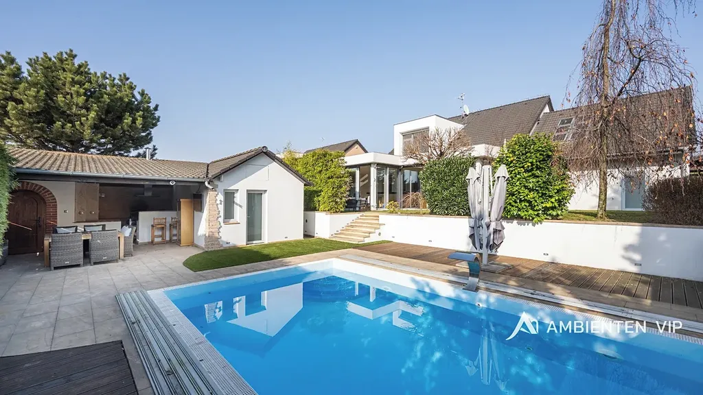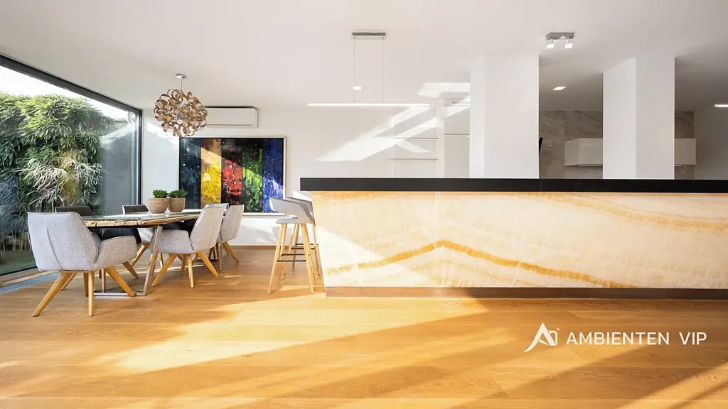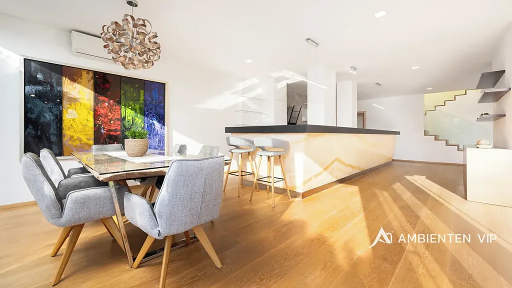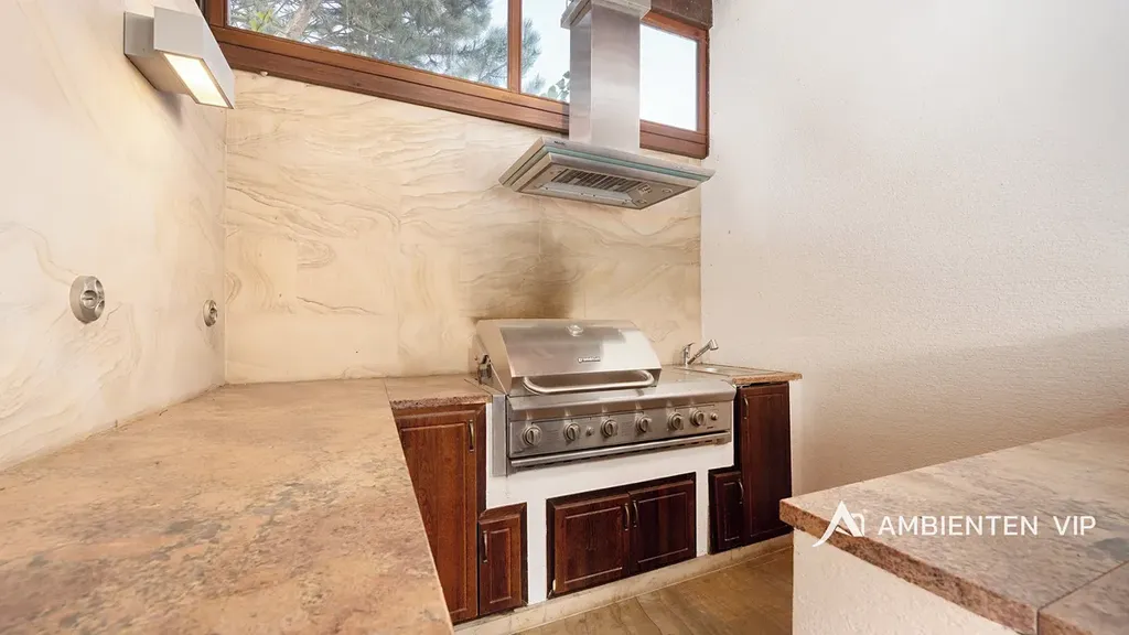 AMBIENTEN VIP exkluzivně nabízí prodej luxusní vily o dispozici 5+kk s garáží pro 2 vozy a parkováním pro další čtyři vozy za branou na vlastním pozemku. Vila vám dále nabízí nádhernou zahradu s bazénem, vinným sklepem, zahradním domem s venkovní kuchyní, saunou a ochlazovací bazénkem. Nemovitost se nachází v obci Moravany u Brna. Celková užitná plocha domu činí 382 m2 a celková plocha pozemku 849 m2. Tato vila představuje ideální volbu pro klienty hledající nadstandardní rodinné bydlení s důrazem na soukromí, kvalitní provedení a promyšlené detaily. Vila prošla kompletní rekonstrukcí před pár lety a je ve výborném technickém stavu, bez nutnosti dalších investic okamžitě k nastěhování. Svým provedením, prostorem a úrovní vybavení splňuje požadavky i velmi náročných klientů. V přízemí domu se nachází vstupní hala, která je vybavena vestavnými skříněmi na míru. Ze vstupní haly vstupujete do otevřené dispozice obývacího prostoru s nadstandardně vybavenou kuchyní a jídelním koutem. Kuchyně je kompletně vybavená moderními spotřebiči značky Miele a profesionálním kuchyňským vybavením. Dominantou kuchyně je jedinečný podsvícený onyxový prvek a kuchyňská linka obložená z kvarcitu Taj Mahal. Obývací část s jídelnou zaujme velkorysými francouzskými okny orientovanými do zahrady, díky nimž je celý prostor krásně prosvětlený. Výrazným prvkem prostoru je kvalitní dubová podlaha od rakouského výrobce, designový krb na dálkové ovládání a luxusní sedačka značky Natuzzi, které společně vytvářejí příjemnou atmosféru pro každodenní bydlení i společenská setkání. V přízemí se dále nachází koupelna a samostatná odpočinková místnost, kterou lze využít například jako relaxační zónu, pracovnu či pokoj pro hosty. První patro disponuje třemi samostatnými ložnicemi, ke kterým náleží samostatné šatny, které nabízí velké množství úložných prostor. Ze dvou ložnic se nachází přímý vstup na terasu. Dále se zde nachází prostorná koupelna vybavená vanou, sprchovým koutem, dvěma umyvadly, toaletou a bidetem. Na zahradě se nachází krytý venkovní bazén s ohřevem o rozměru 8 x 4 m. Okolí bazénu je z pískovce Teakwood. Voda v bazénu je celoročně vyhřívána až na 32 °C. Dále se zde nachází zahradní dům, který je podsklepený s vinným sklepem. V zahradním domě je venkovní kuchyně s příjemným posezením a dále sauna s ochlazovacím bazénkem, sprchou a toaletou. Nemovitost nabízí maximální soukromí díky pečlivě řešené zahradě a zároveň nadstandardní vybavení. Vila je zabezpečená systémem Jablotron, vybavena kamerovým systémem a inteligentním systémem řízení domácnosti. Samozřejmostí je dálkové ovládání vstupní brány i garážových vrat. Komfort při příjezdu zajišťuje vyhřívaný příjezd i vstup do domu a k dispozici je prostorná dvojgaráž. Soukromí zahrady podtrhuje promyšlená kompozice vzrostlé zeleně, kde nechybí katalpy, magnolie, červený javor ani celoročně zelené bambusy, které vytvářejí příjemnou atmosféru. Zahrada je vybavena automatickým závlahovým systém s dešťovým senzorem. Součástí prodeje jsou také designová svítidla, skleněné jednovrstvé podsvícené zábradlí a moderní klimatizační systém značky Sinclair (5 jednotek), který umožňuje chlazení i přitápění. V celém domě jsou trojskla přispívající k vysokému energetickému komfortu bydlení vč. venkovních žaluzií. Vytápění domu je zajištěno přes plynový kotel. Stavba je provedena z cihelného zdiva POROTHERM se zateplením polystyrenem o tloušťce 10 cm. Fasádní systém je od rakouské značky Baumit a střešní krytina je značky Bramac. Současný majitel zároveň nabízí možnost předání kompletního servisu spojeného s údržbou domu. Obec Moravany patří mezi vyhledávané rezidenční lokality v bezprostřední blízkosti Brna. Nabízejí kompletní občanskou vybavenost a zároveň klidné prostředí s rychlou dostupností do centra města. Do centra Brna je možné se dostat přibližně do 15 minut, nákupní centrum Futurum je vzdáleno pouhých 5 minut jízdy. Výhodou je také velmi dobré napojení na dálnice D1 a D2.