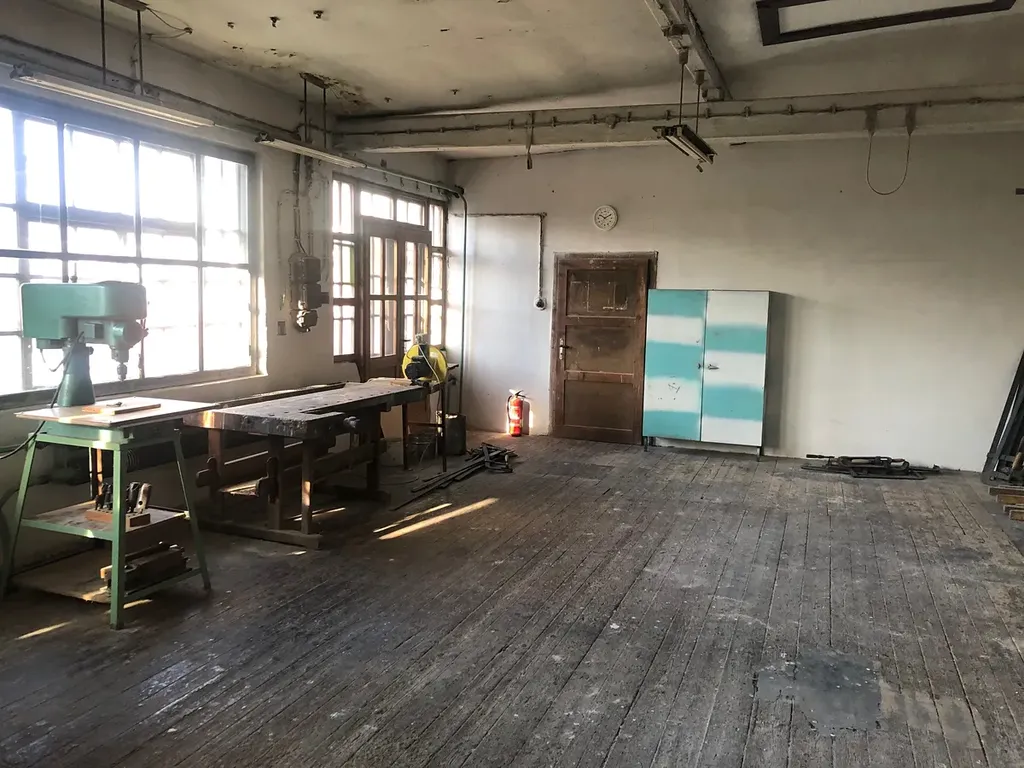 Budova dílny je umístěna ve dvorním traktu a má 2 podlaží (celkem 195 m²). V přízemí se nachází strojní výrobna, v patře pak ruční dílna a kancelář, samostatné sociální zařízení je k dispozici v protější budově ve dvoře.