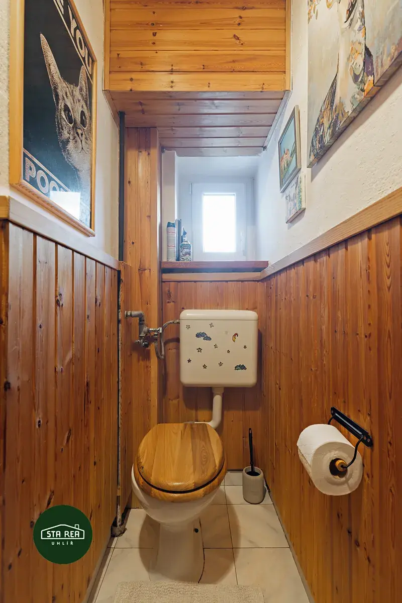 Zděný dům byl postaven v 60. letech. Následně byl dům v čase několikrát modernizován, tak aby vyhovoval době a časově příslušným standardům. Dům o dvou nadzemních podlažích a jedním podzemním podlažím má dvě bytové jednotky. Vše podstatné je funkční, dům je obyvatelný bez nutných zásahů. Nemovitost je také vhodná k rekonstrukci, díky které si nový majitel může vytvořit bydlení přesně podle svých představ. Součástí je garáž pro dvě auta, bazén, skleník a kopaná studna. Nabídka může být zajímavá i pro někoho, kdo by chtěl část domu využít ke krátkodobému nebo dlouhodobému pronájmu.