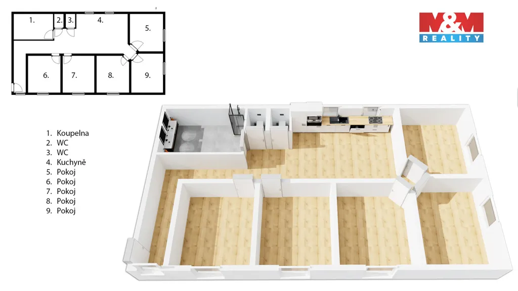 Nemovitost je na KÚ vedena jako RD, svým rozsahem však představuje zajímavou investiční příležitost. Dům má 18 místností rozložených do tří nadzemních podlaží. Celková podlahová plocha činí cca 600 m².