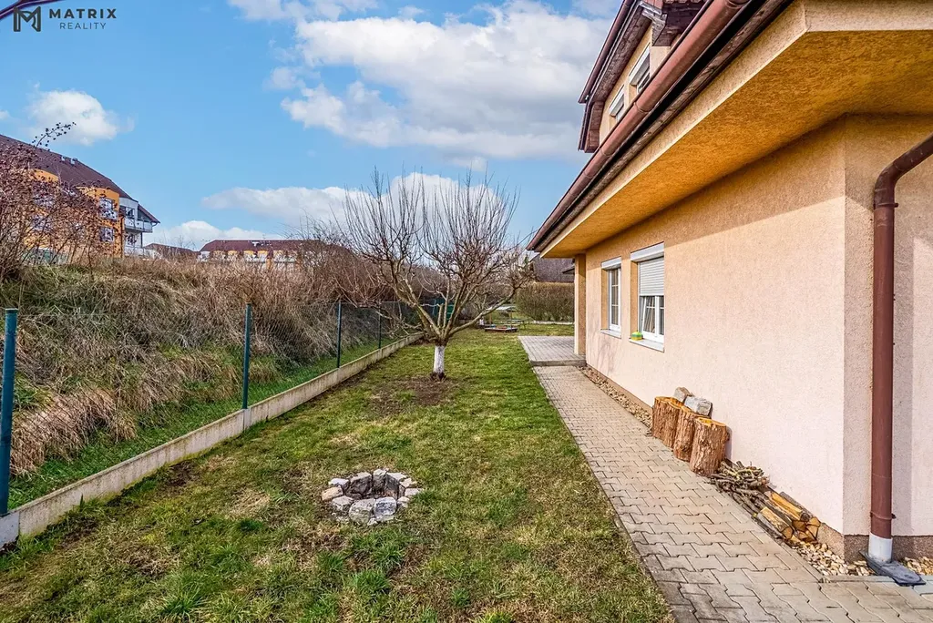 Dům byl kolaudován v roce 2014 a je ve velmi dobrém technickém stavu. Celková užitná plocha činí 294 m and sup2;, celková výměra pozemku je 743 m and sup2;. Součástí domu je rovinatá zahrada o ploše 542 m and sup2;, zastřešená terasa a dvojgaráž, doplněná o další parkovací možnosti na pozemku i před domem.