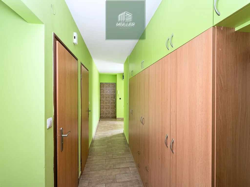 Byt zaujme především svou velikostí, promyšlenou dispozicí a dostatkem úložných prostor. K dispozici je velká vestavěná skříň na chodbě, praktické odkládací prostory a samostatná technická místnost, která zvyšuje komfort každodenního bydlení.