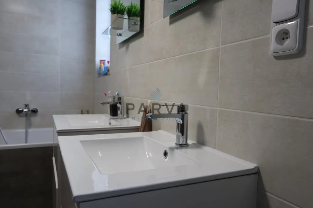 Samozřejmostí je vysoký technický standard – vytápění i ohřev vody zajišťuje plynový kondenzační kotel, přičemž v celém bytě je instalováno podlahové vytápění pro maximální komfort. Okna orientovaná do méně klidných částí jsou vybavena venkovními žaluziemi, stejně jako terasa, což zajišťuje ideální regulaci světla i soukromí.