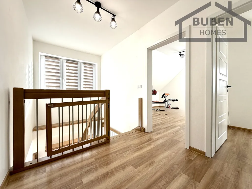 Přízemí domu tvoří vstupní chodba, samostatné WC, šatna, technická místnost, prostorná obývací hala s kuchyní se spíží, se vstupem na terasu a pracovna. V patře jsou vybudované tři prostorné ložnice (jedna se samostatnou koupelnou s WC - sprchový kout) a druhá koupelna s WC (vana, sprchový kout).