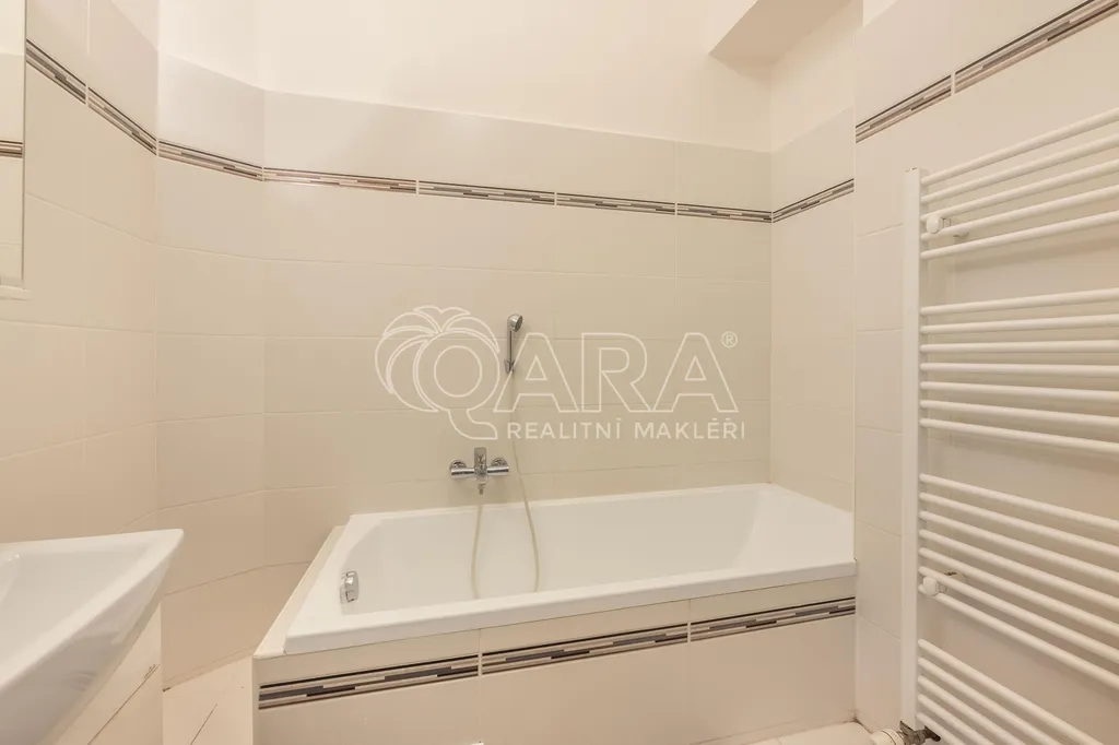 Součástí bytu je dále prostorná předsíň (12,7 m²), koupelna s vanou a umyvadlem, samostatné WC a komora, ve které je umístěna pračka a myčka na nádobí. V bytě jsou parkety, vinyl a dlažba.