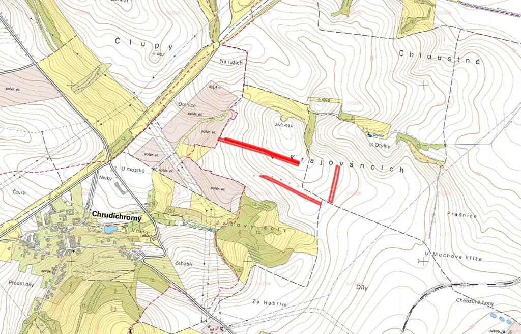 V daném území probíhají pozemkové úpravy, které do budoucna řeší uspořádání pozemků, vlastnické vztahy a zpřístupnění parcel. Tento proces může přispět ke zvýšení přehlednosti i dlouhodobé hodnoty vlastněné půdy.