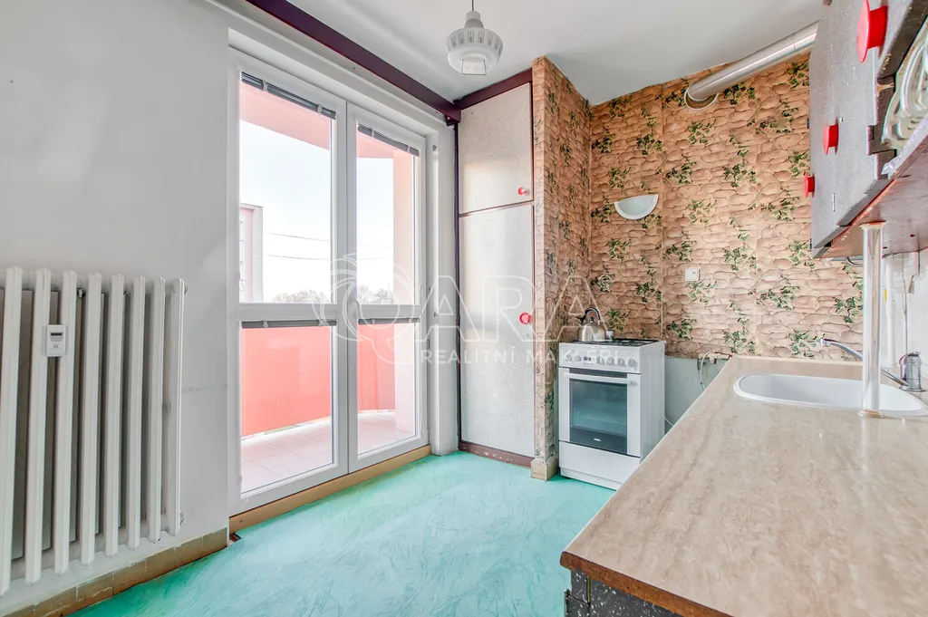 Tento byt v osobním vlastnictví se nachází v pátém nadpodlaží sedmipatrového panelového domu, který již prošel kompletní revitalizací. Jeho současný stav je ideální pro celkovou modernizaci. Na podlahách je položeno linoleum a koupelnové jádro je původní (umakartové), což vám dává volnou ruku při návrhu nové moderní koupelny. Ohřev vody je momentálně zajištěn plynovou karmou.
