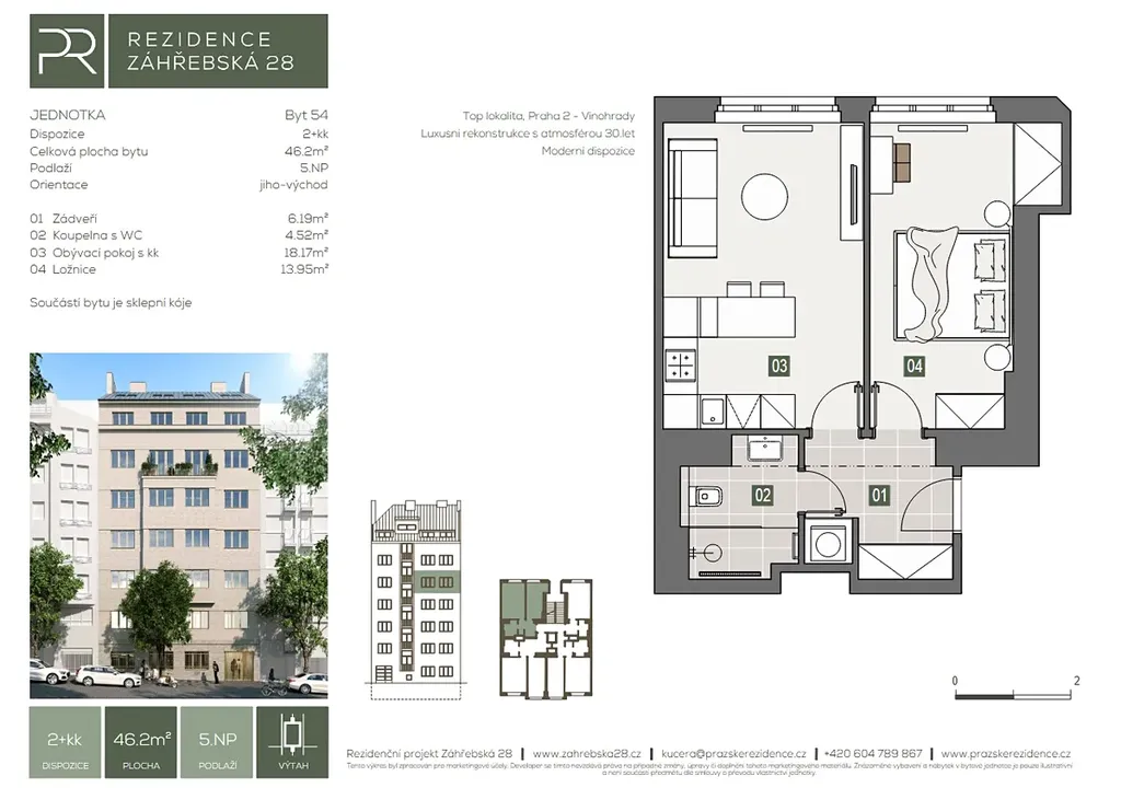 Nabízím vám jedinečnou příležitost ke koupi stylového bytu 2+kk v prestižním projektu „Záhřebská 28“ od renomovaného developera Pražské rezidence.